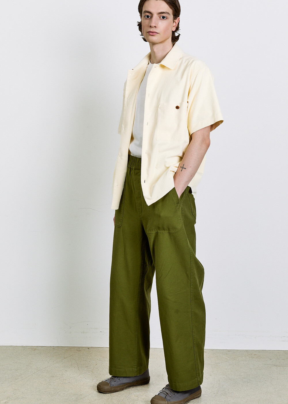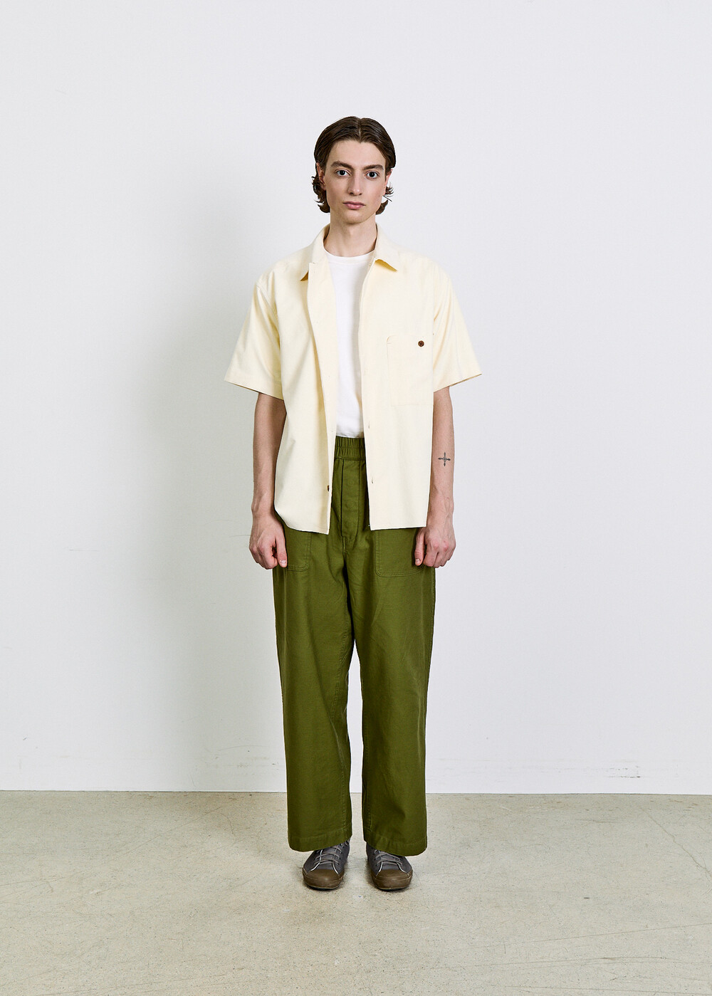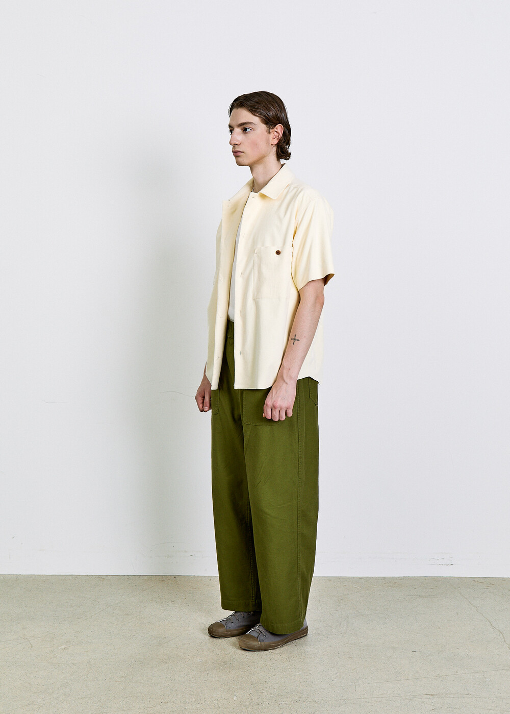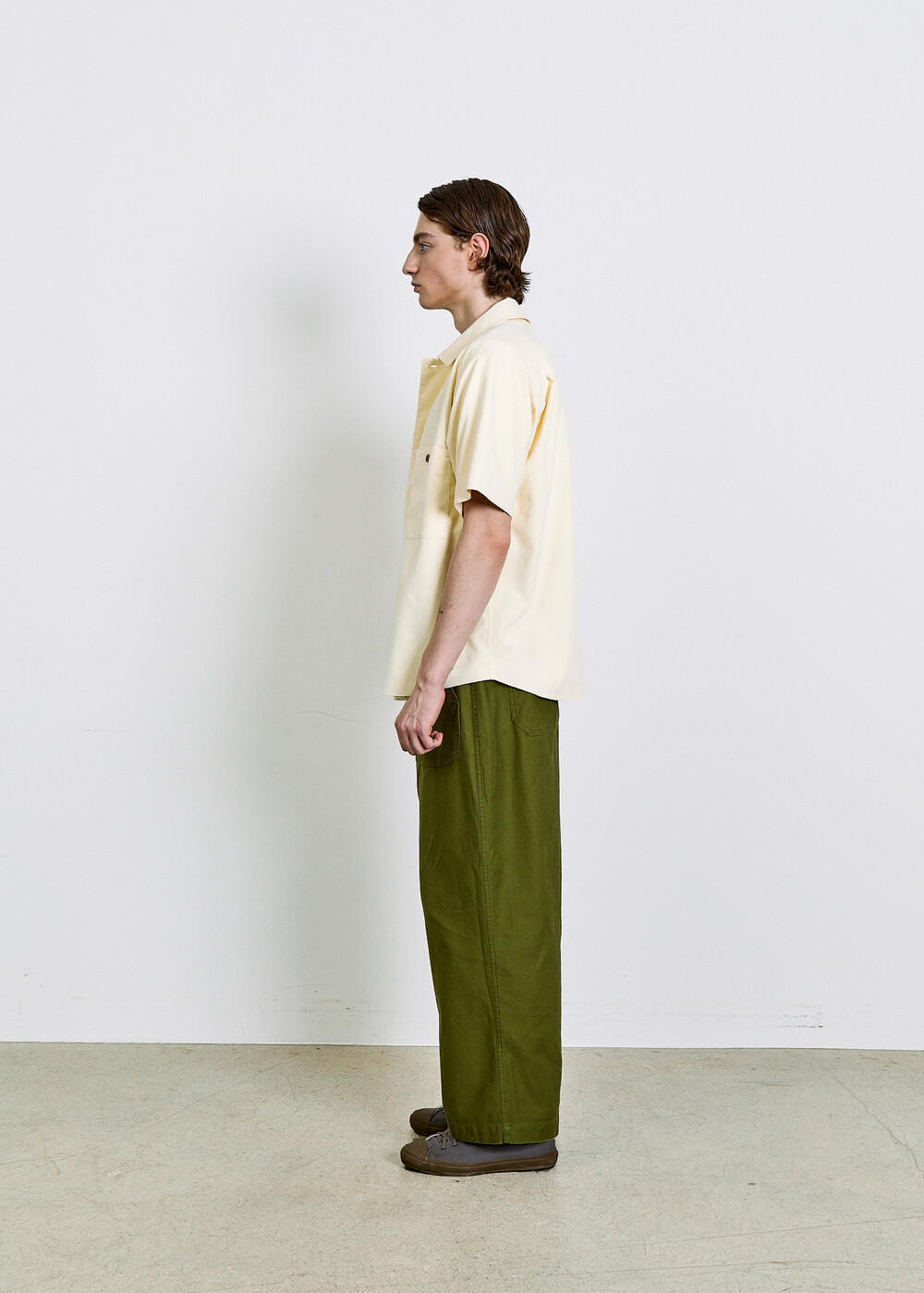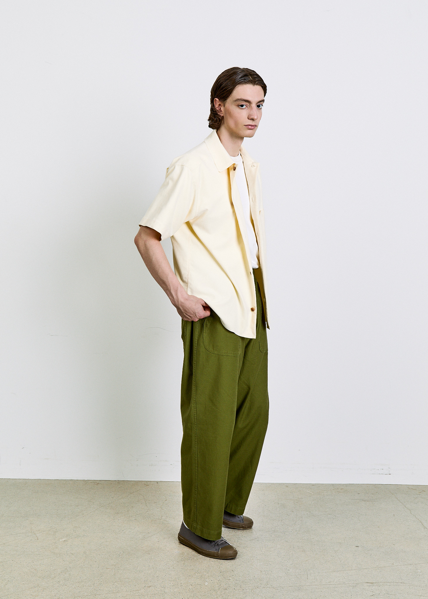 여유 있게 떨어지는 실루엣과 단정한 칼라, 한쪽 가슴 포켓의 균형이 담백한 인상을 만들며, 전체적으로 힘을 뺀 구조 안에서 조용한 디테일이 드러납니다.