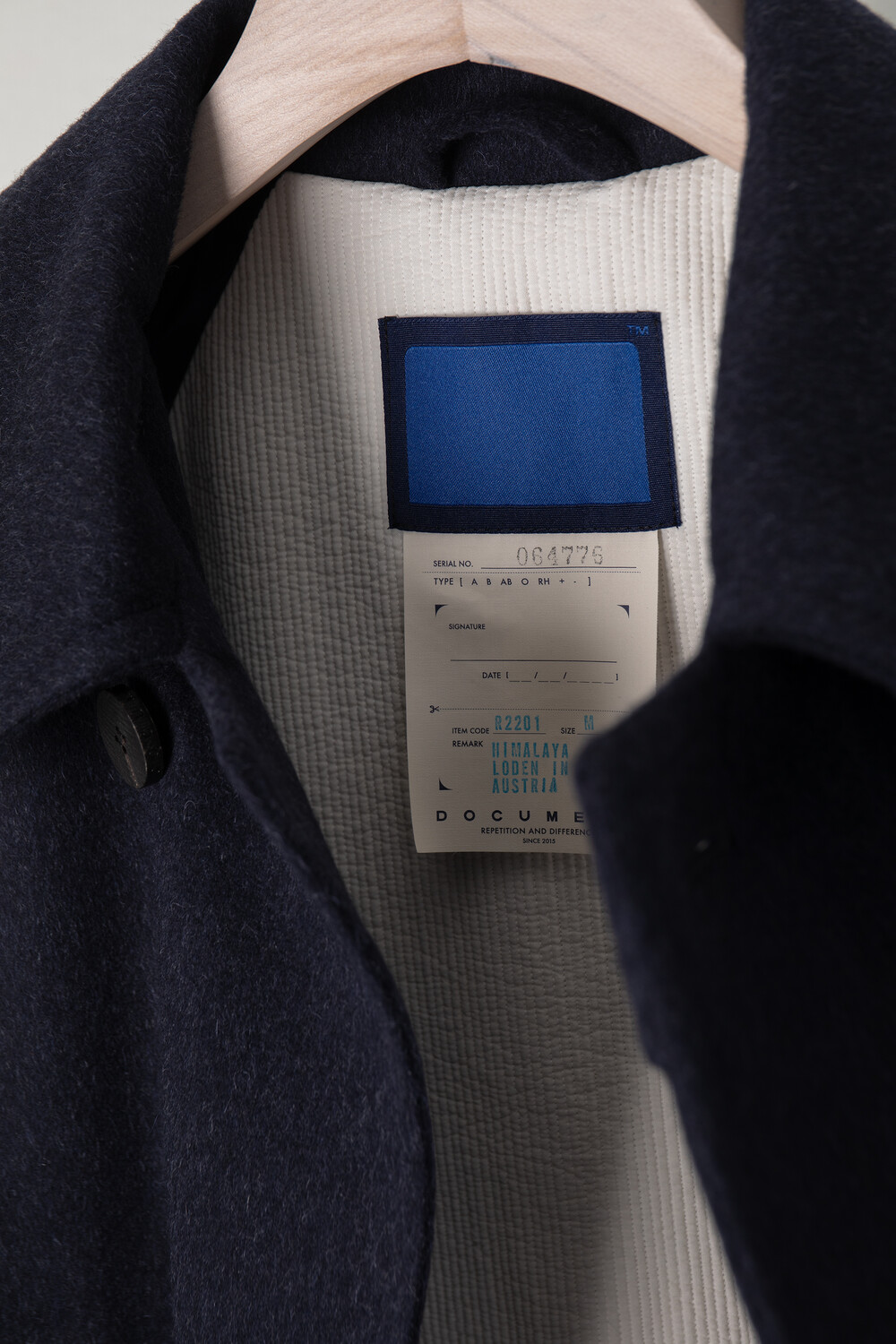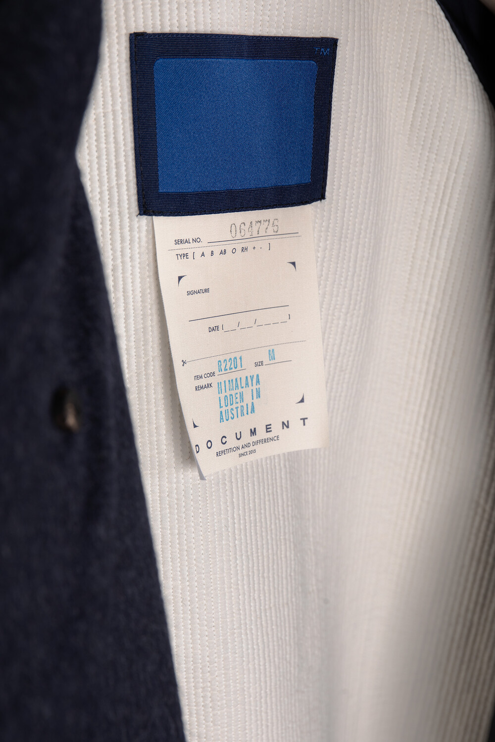 Himalaya Loden offers natural wind resistance, warmth, and durability,while maintaining a graceful drape and quiet depth in texture.Born from the Alpine climate, it matures with wear —a living fabric that evolves subtly over time,reflecting Document’s philosophy of “Repetition and Difference.”