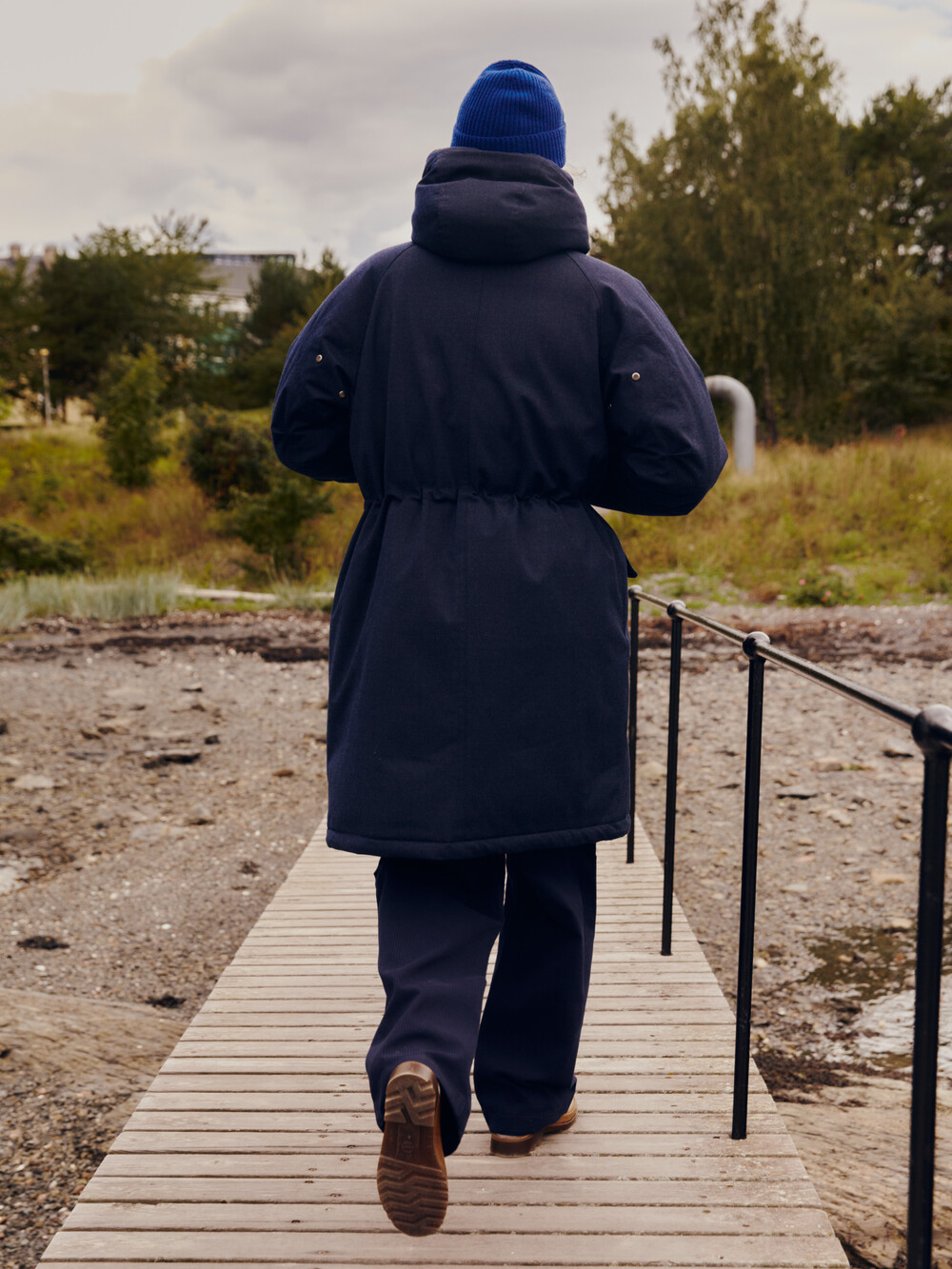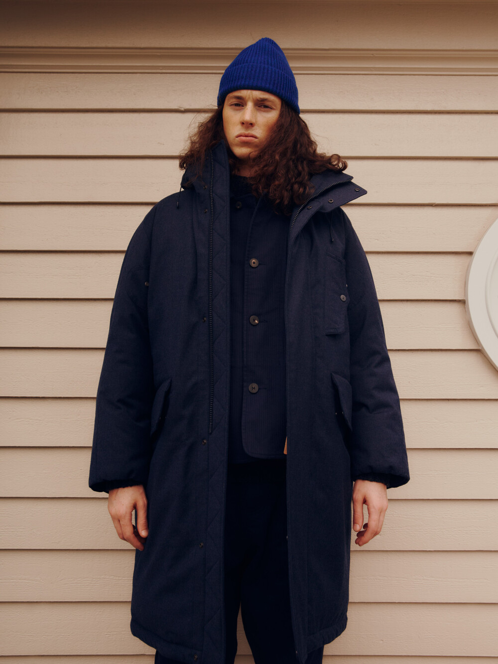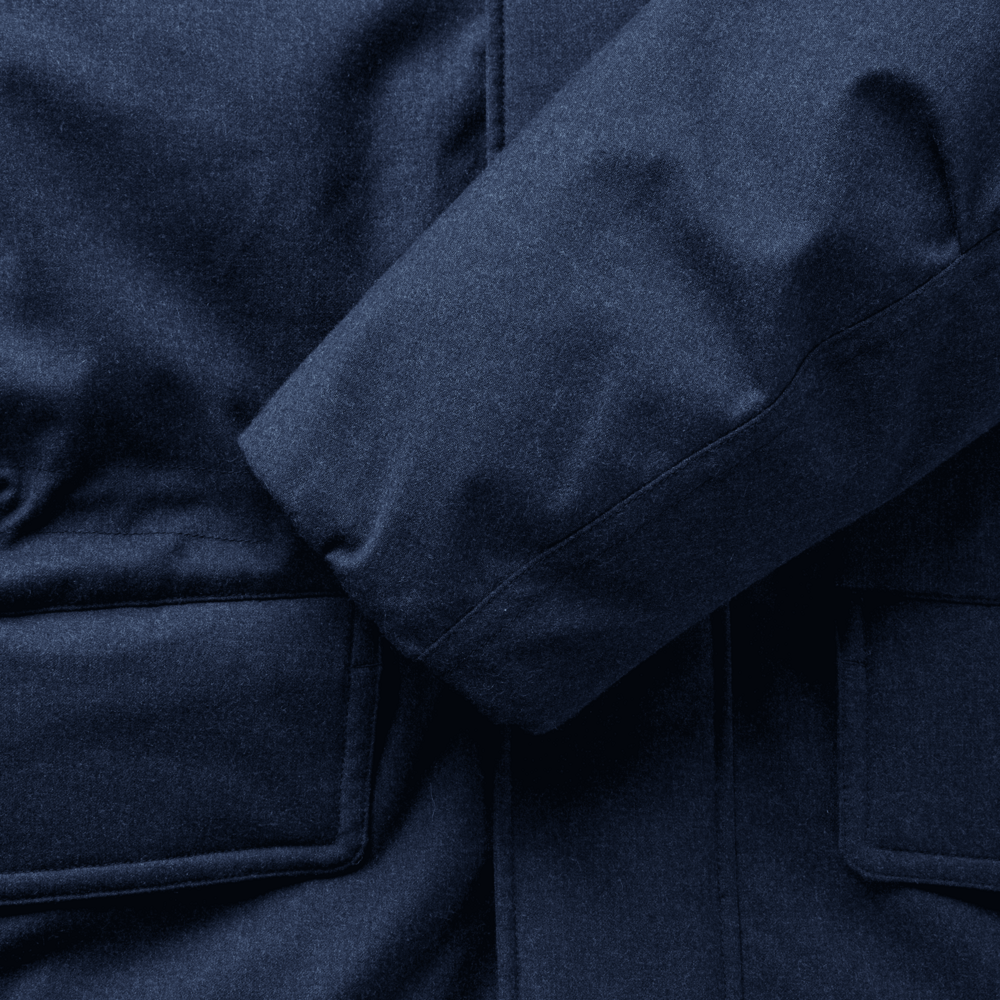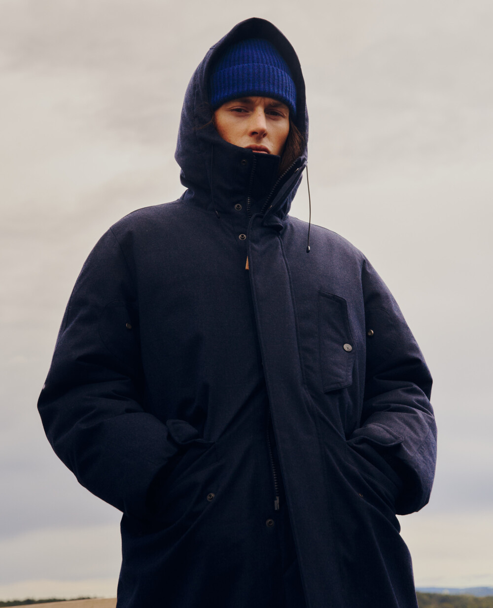 It is a premium down parka with both winter warmth, functionality and style. Made from an Italian wool blend fabric, it provides a windproof, moisture-permeable and comfortable fit due to stretch.The filler uses premium goose down for lightweight yet excellent warmth. The raglan sleeve pattern increases your activity, and the adjustable waist, hood and hem string details allow you to create a variety of silhouettes depending on your style.The signature detail, Armhole Unbeatable Design, highlights minimal lines, and the original parka-inspired double pocket detail can also be used as a hand warmer feature. From winter routines in the city to outdoor activities, this is a down parka that satisfies both style and performance.