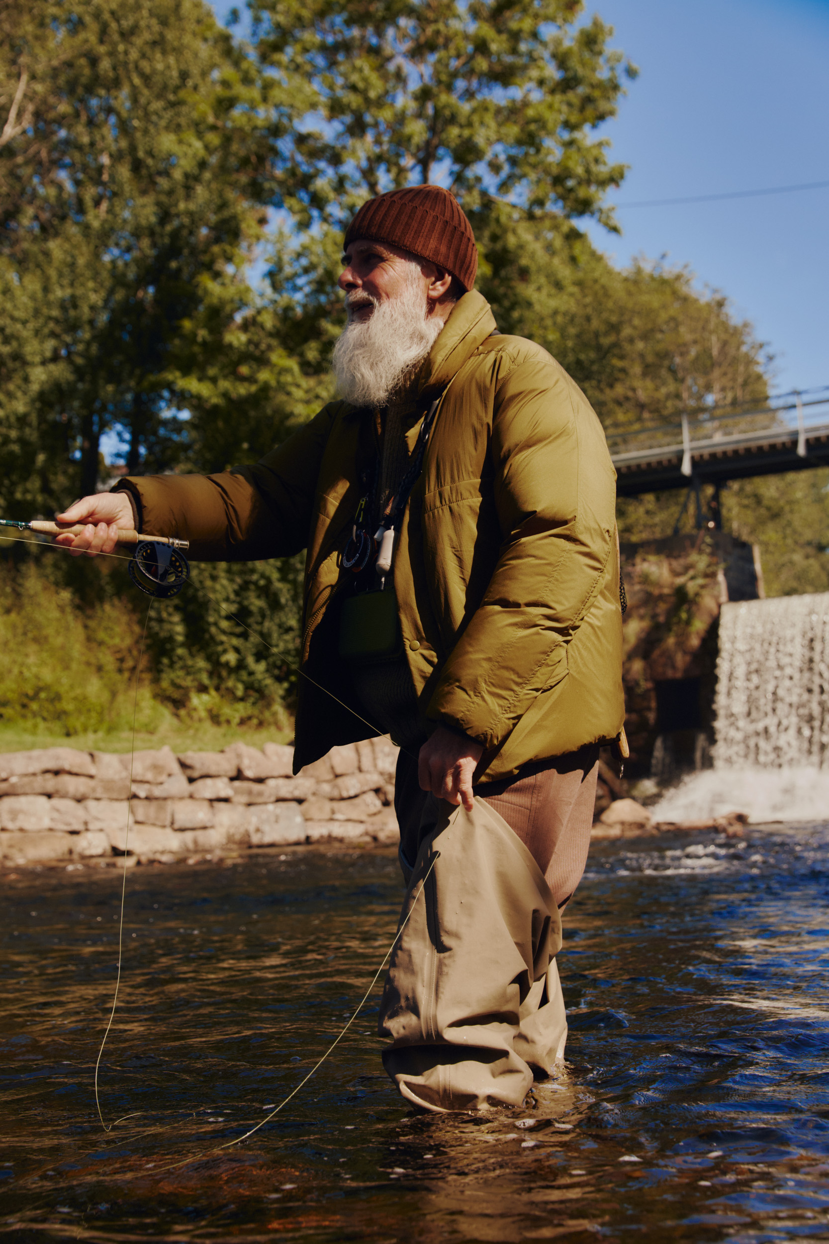 도큐먼트의 시그니처 피셔맨 셔팅 재킷 실루엣을 기반으로 한 경량 구스 다운 재킷입니다.**ED-101C 원단(나일론 100%, 35g/㎡, 54인치 폭)**을 사용하여 매우 가볍고 유연한 착용감을 제공하며, 구스 다운 충전재로 가볍지만 뛰어난 보온성을 구현했습니다.