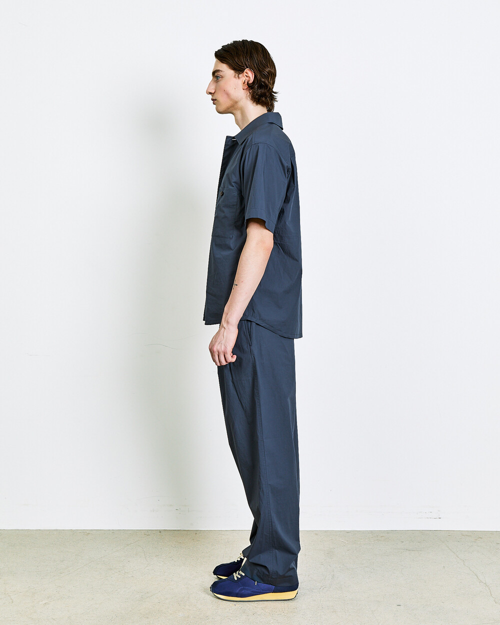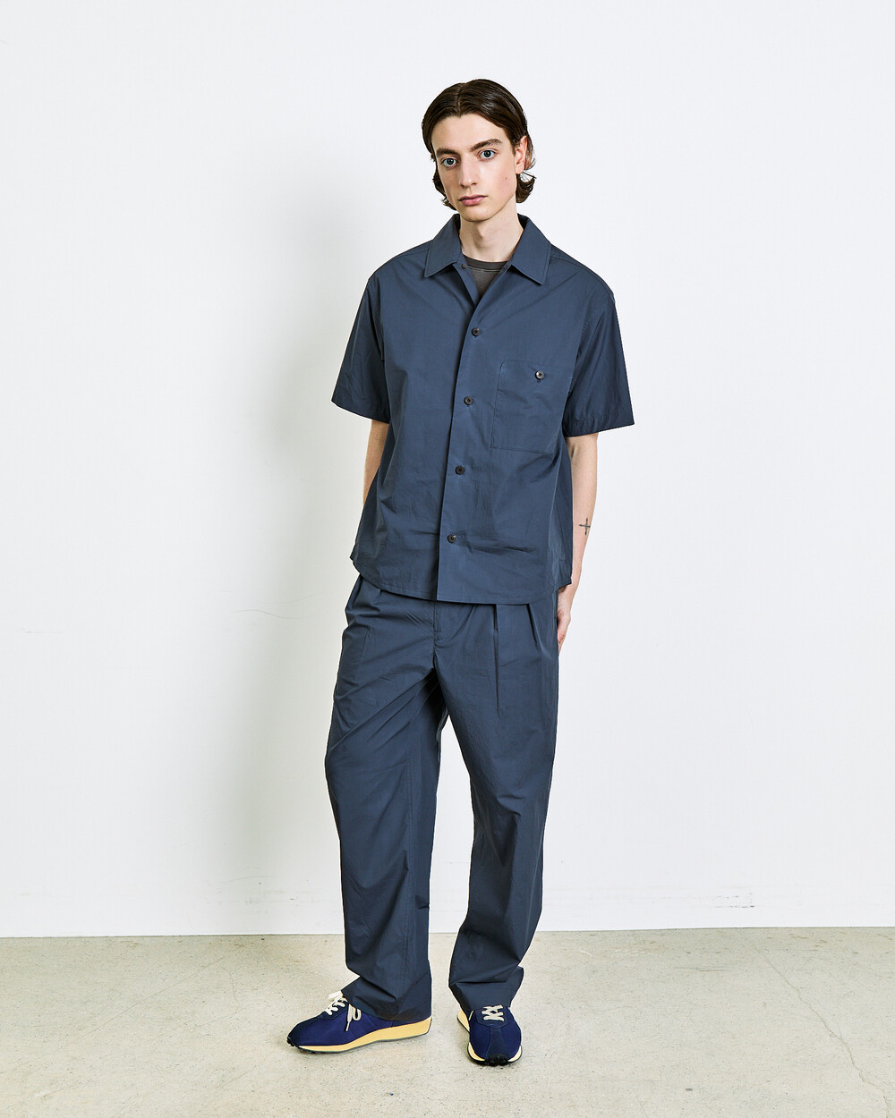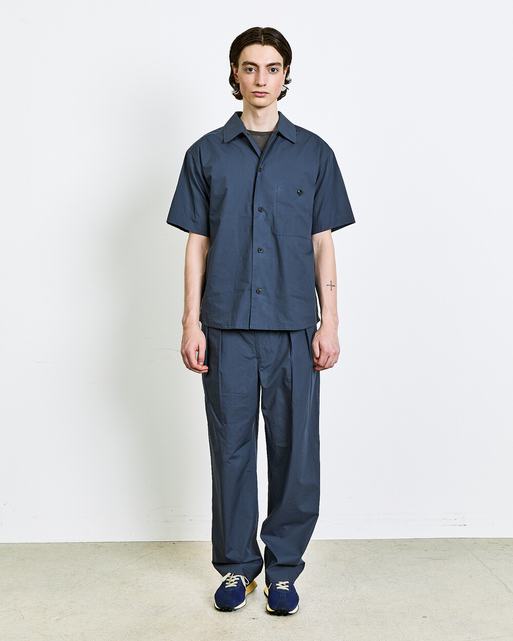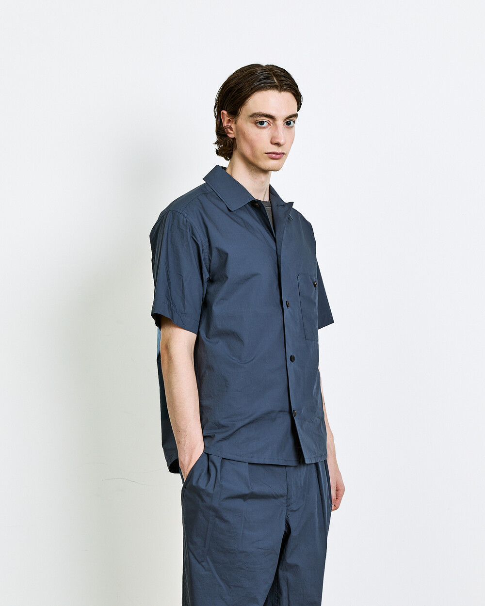 A short-sleeve reinterpretation of Document’s signature French shirt.Made from 100% 80-count cotton, the fabric offers a light, refined touch and a clean appearance, while the relaxed silhouette ensures everyday comfort.It can be worn fully buttoned up for a neat look or styled with an open collar for a more relaxed mood.A single chest pocket, real horn buttons, and a curved hem complete the design with understated balance.