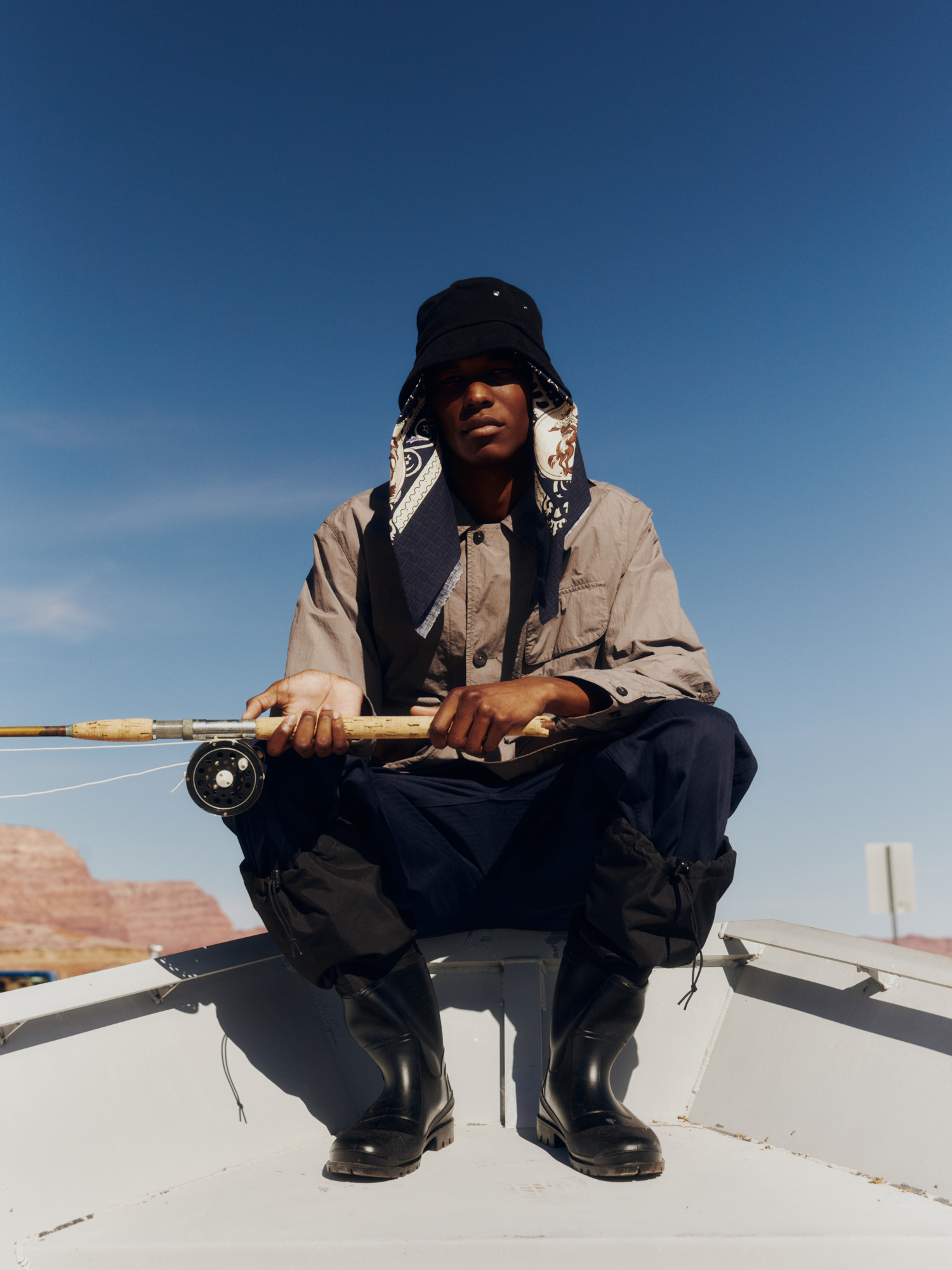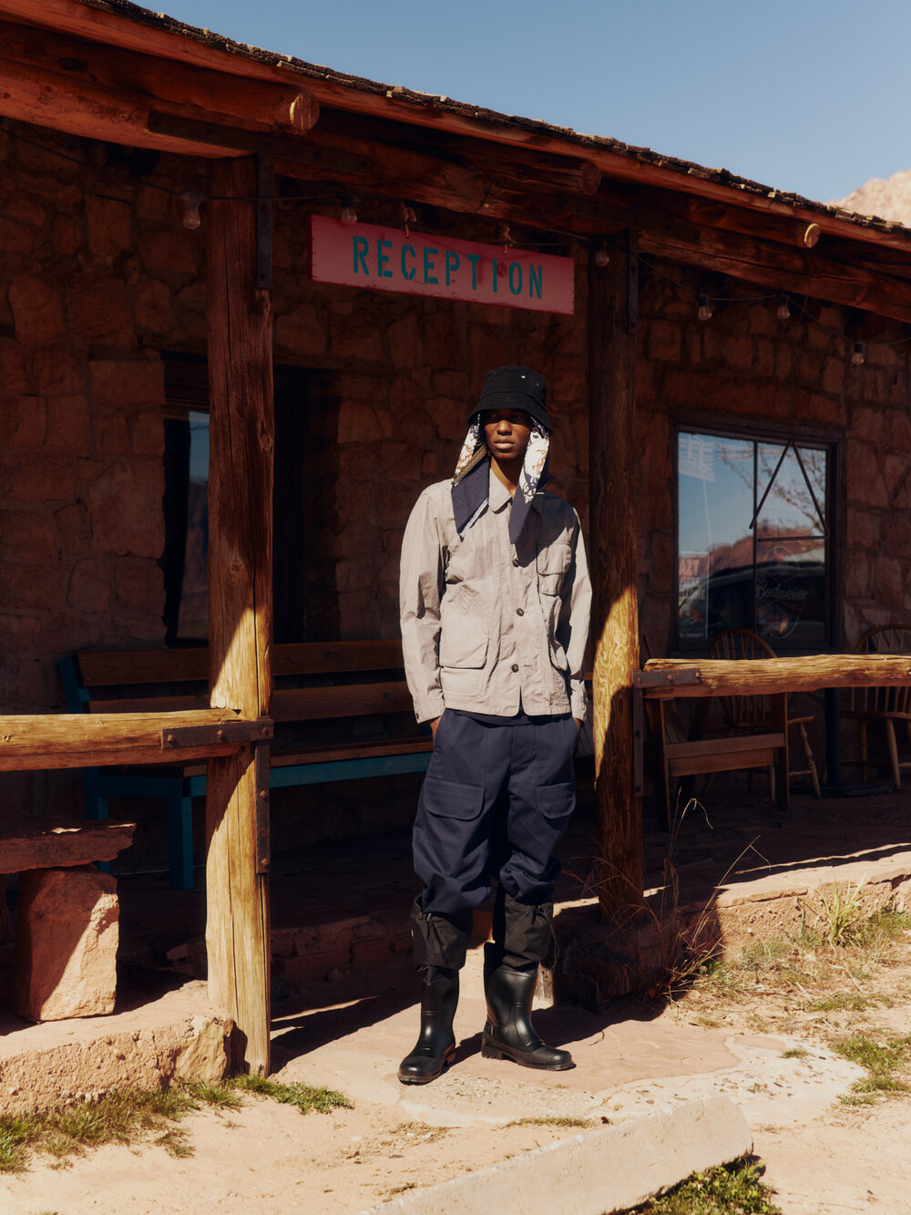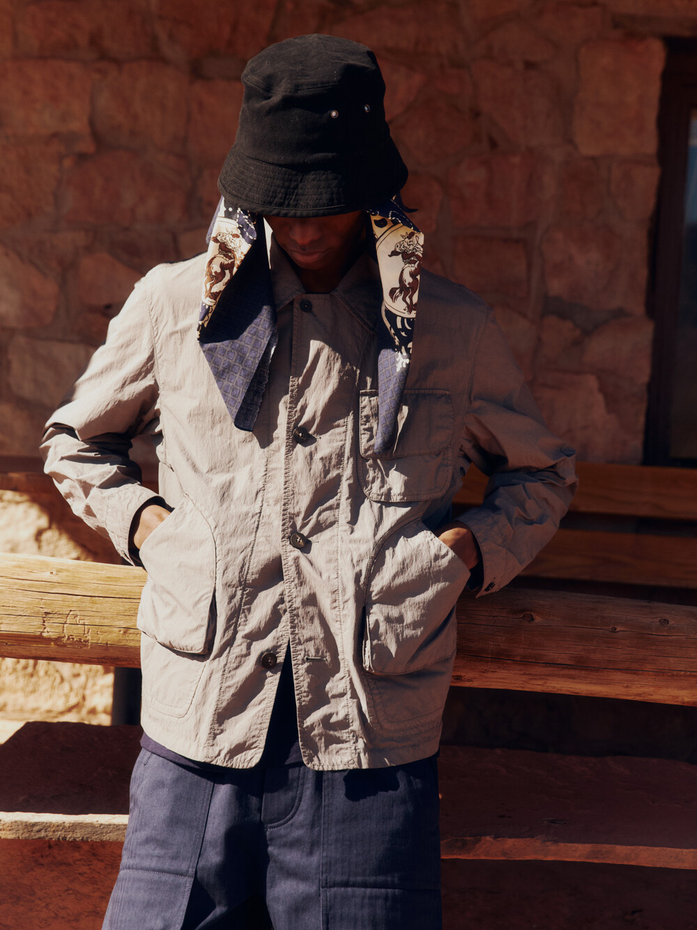 The signature fishing-jacket 3D pocket details are refined into a cleaner form for everyday wear. A relaxed silhouette and back tuck enhance mobility and comfort, and the interior construction mirrors the original fishing-jacket structure for a more complete finish—light, but thoughtfully built.