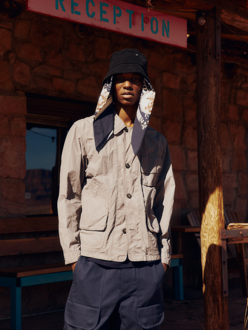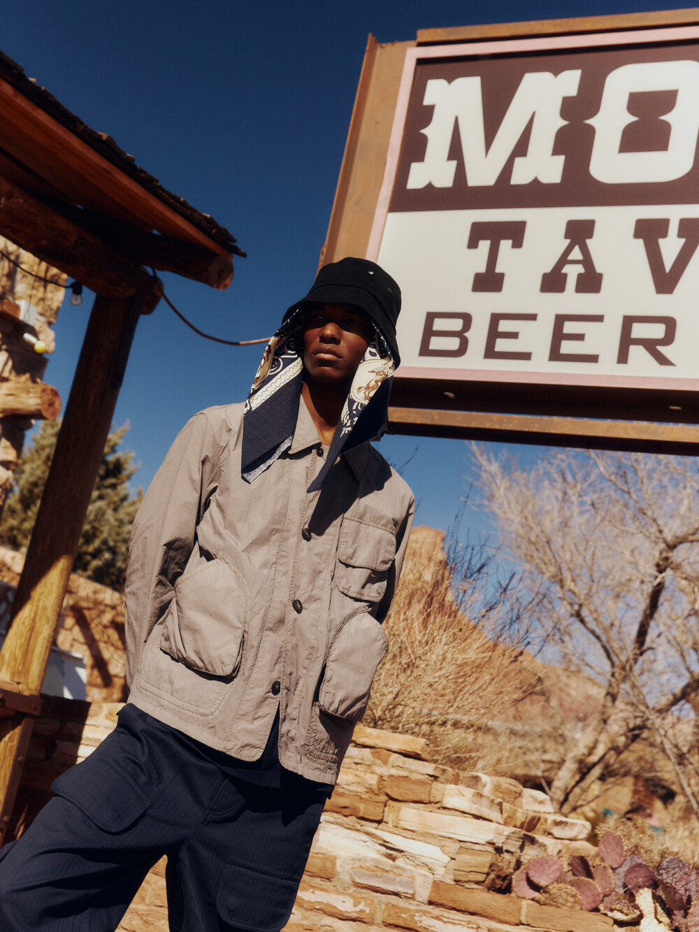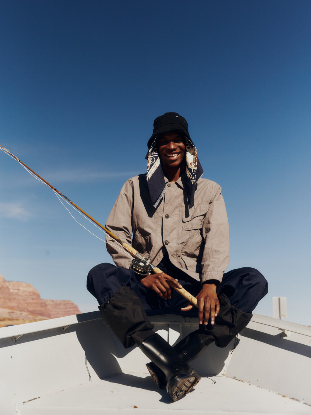 The signature fishing-jacket 3D pocket details are refined into a cleaner form for everyday wear. A relaxed silhouette and back tuck enhance mobility and comfort, and the interior construction mirrors the original fishing-jacket structure for a more complete finish—light, but thoughtfully built.