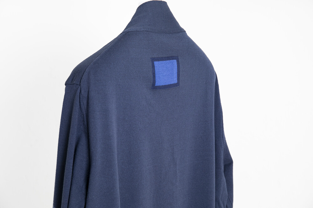 헴 라인의 립은 앞과 뒤가 다른 크기로 편직되어 독특한 뉘앙스를 드러내며, 뒤 쪽이 조금 더 짧은 구조로 특유의 편안한 실루엣이 드러납니다.