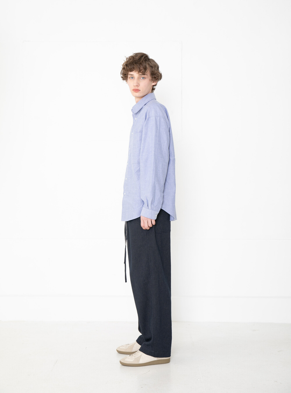 옥스포드 원단에 워싱을 거쳐서 자연스러운 외관에 부드러운 퀄리티로 완성되었으며, 버튼으로는 화이트 컬러의 천연 너트 단추를 사용하였습니다.