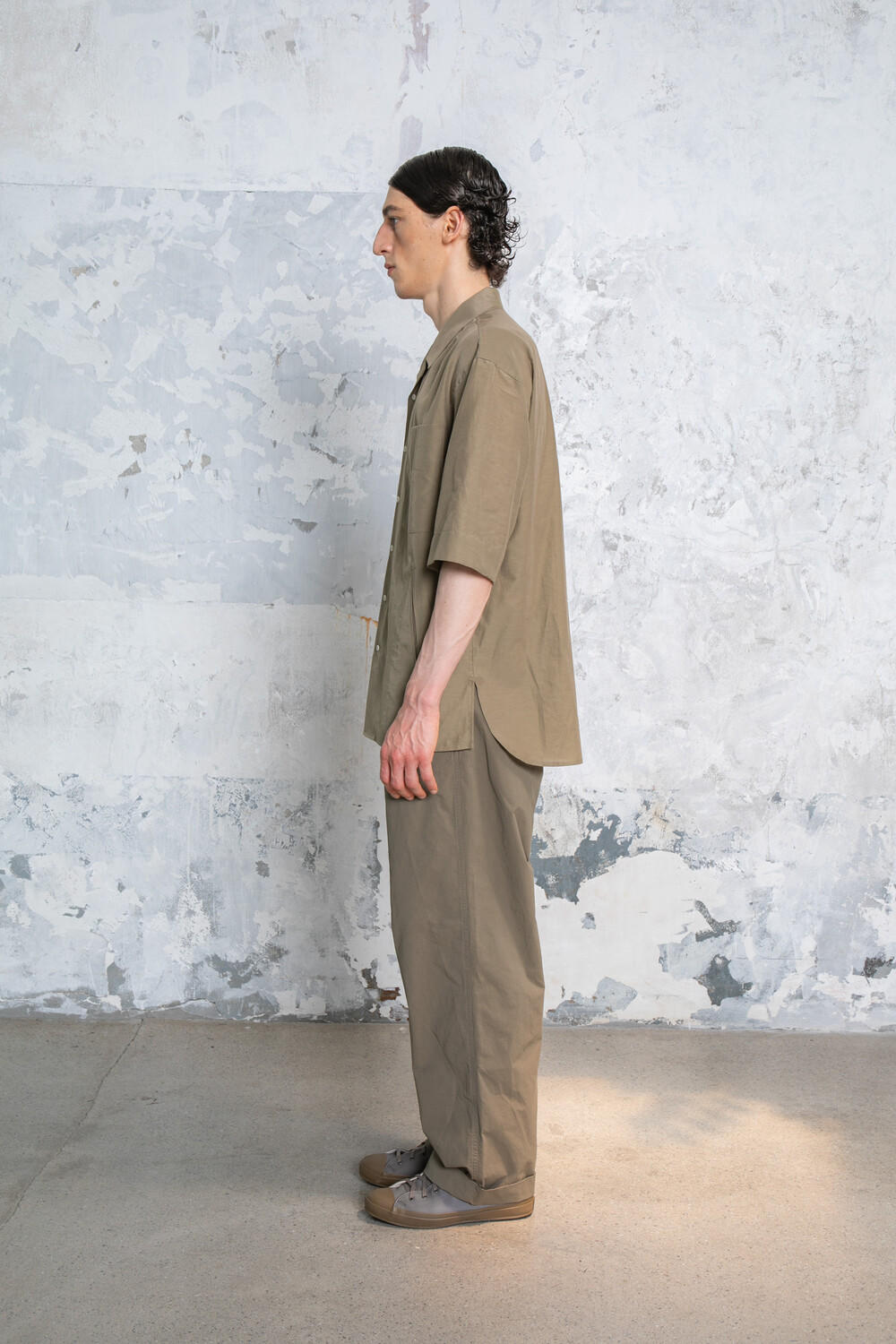 편안한 분위기를 자아내는 오픈 카라 형태에서 맨 윗 단추를 여며서도 입을 수 있는 구조입니다.