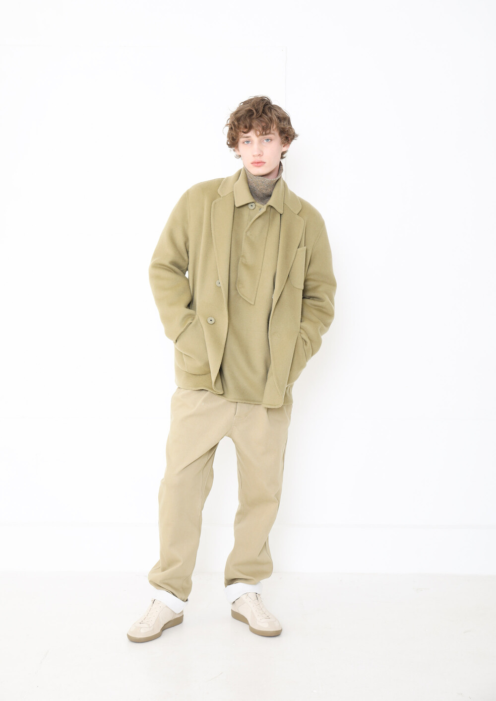 아웃포켓의 매력과 반 더블의 여밈의 조합이 매력적입니다.