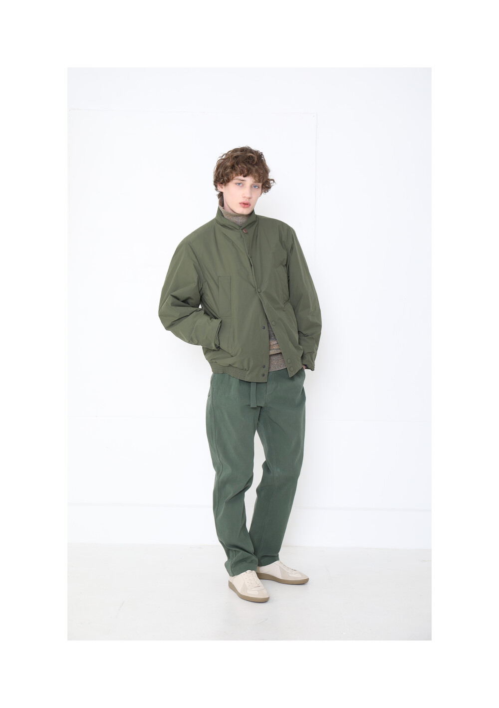 벨트와 주름이 있는 BELTED TROUSERS 가 색감이 진하게 드러나는 치노 코튼으로 만들어졌습니다.