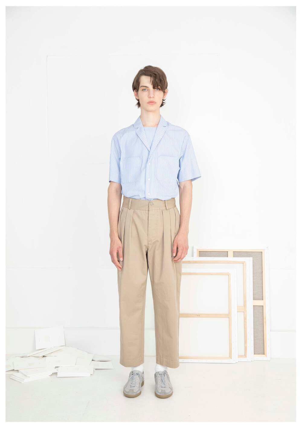 기존의 THREE TUCKED TROUSERS 에서 핏을 중점으로 변경하여 수정되었습니다.