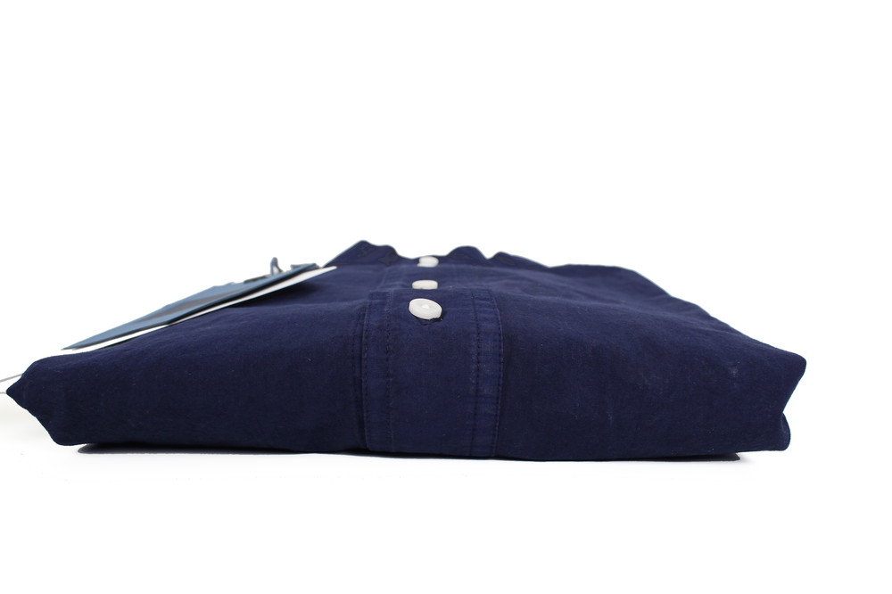 무표백된 60수 코튼 원단으로 완성된 셔츠상태로 전체 염색을 진행한 제품입니다. 자연스런 워싱느낌과 깊은 컬러감이 매력적입니다. 카라가 없이 밴드로만 구성되어지는 심플한 네크라인과 라글란 패턴은 소매의 봉제선에서 해방되어 어깨를 부드럽게 감싸며, 전체의 착용감은 적당한 여유감을 가져가는 편안한 핏입니다. 뒷판 요크의 샤링의 주름은 유니크한 느낌을 전달하며, 원단의 터치는 전체적으로 부드럽지만, 만질때 약간의 사각거림을 동반하고, 원단 자체의 힘이 담겨있습니다. 미색의 컬러의 천연 너트 단추가 사용되었으며, 단추의 로고를 음각으로 새겨 넣어 눈에 띄지 않지만, 입는 사람만이 알수 있도록 하는 도큐먼트의 철학을 반영한 디테일을 느끼실 수 있습니다. 또한 입을수록 자연스러운 물빠짐은 입는 사람의 습관에 따라 변하는 자연스러운 경년변화도 느낄 수 있습니다. 도큐먼트의 셔츠의 가장 큰 특징은 품질라벨이 옆선에 달려 있지 않고, 앞 단작 안쪽 아래에 위치 되어 있어, 몸에 닿았을때, 걸리적거림이 없습니다. 원래 내의로 입혀졌던 셔츠의 기능을 그대로 전달하기 위하여, 불편하거나 불필요한 요소를 제거하고, 셔츠 본연의 편안함과 전체 염색으로 피스 마다 다르게 적용되는 프렌치 블루의 미묘한 컬러 톤 차이가 느껴지는 도큐먼트의 스테디 셀러 셔츠입니다.