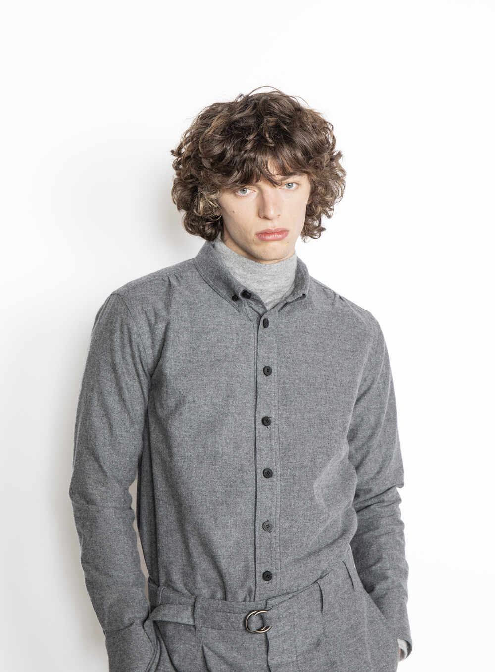 : COTTON FLANNEL BUTTON DOWN SHIRT_GREY
