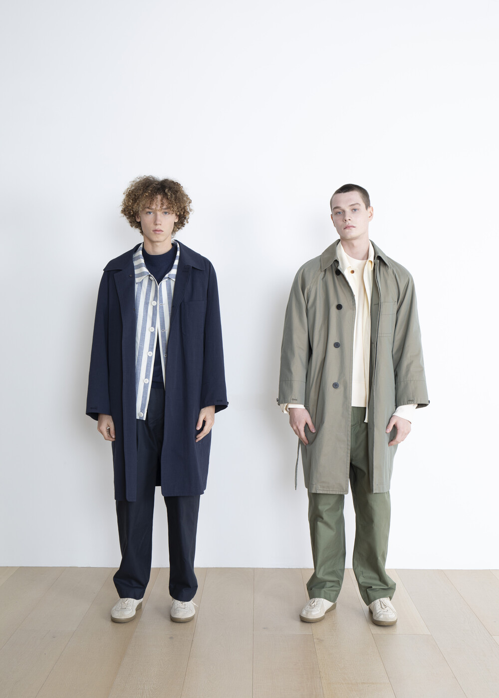 사이드포켓, 가슴 포켓 등을 통한 넉넉한 수납과 허리의 슬릿을 통해 허리 끈이 나오는 밀리터리 기반의 트렌치코트의 형태이며, 안쪽에는 도큐먼테이션 라벨이 부착되고,