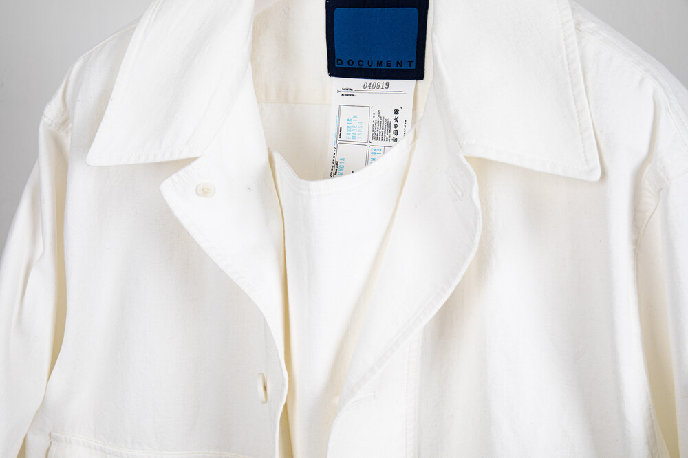 도큐먼트의 시그너쳐인 빅 포켓 쟈켓 디자인에 녹아 들어, 열 다섯번째 반복과 차이 시즌에 새로운 화이트 빅포켓 쟈켓을 선보입니다.