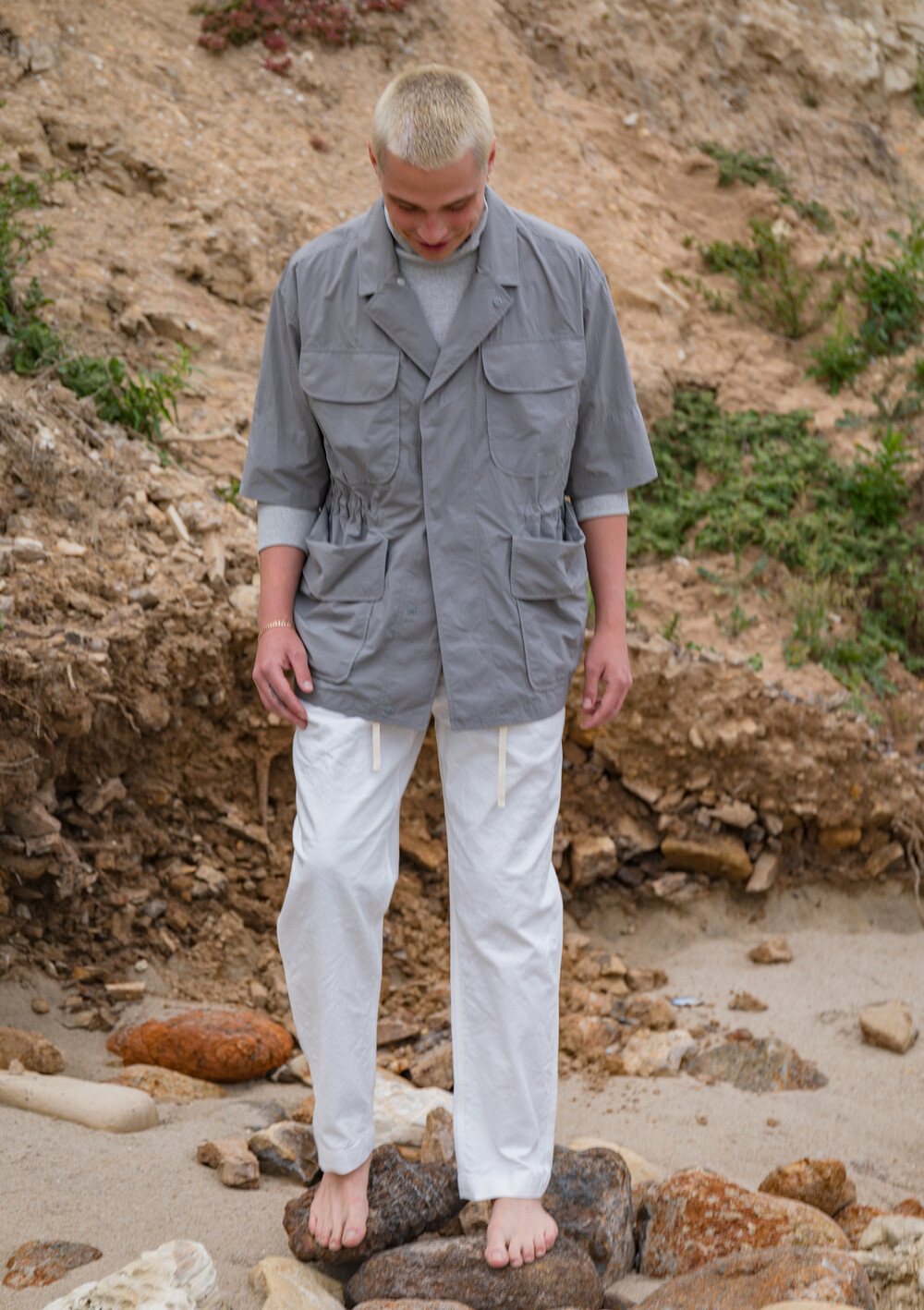 19번째 반복과 차이를 통해 기존의 이지팬츠의 형태를 일본산 코튼린넨 혼방원단의 도비직기로 제작되었습니다.