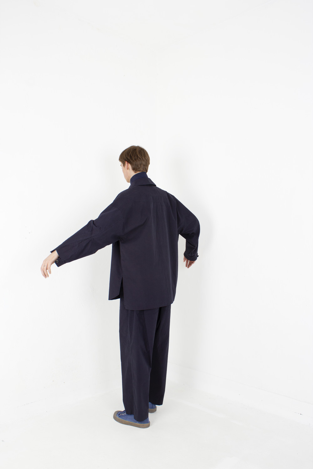 끝이 부드러운 카라와 루즈함을 살짝 드러내는 옆트임이 있으며, 소매를 걷어 있을 수 있도록 여유있는 사이즈와 독특한 소매 디자인이 특징입니다.