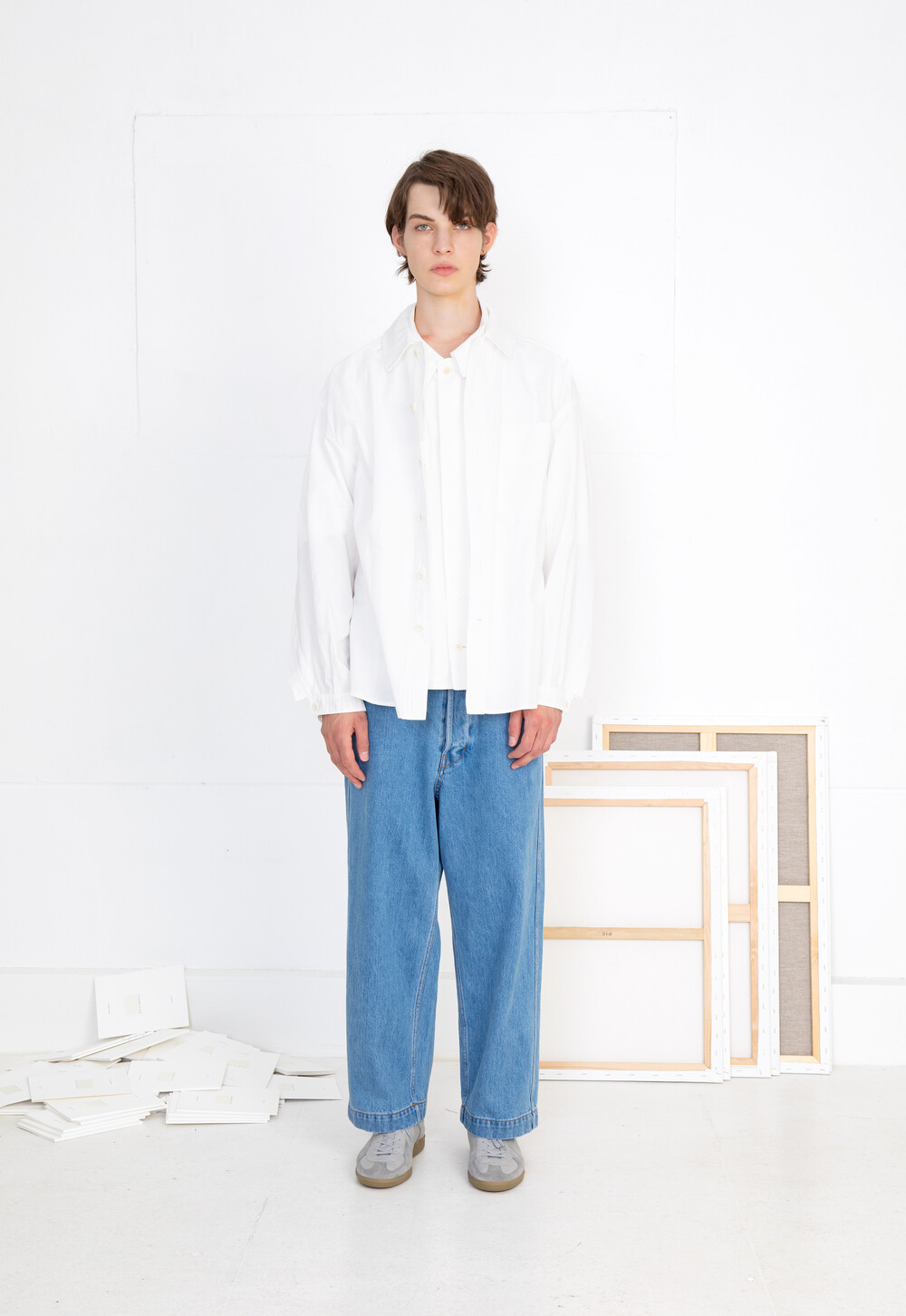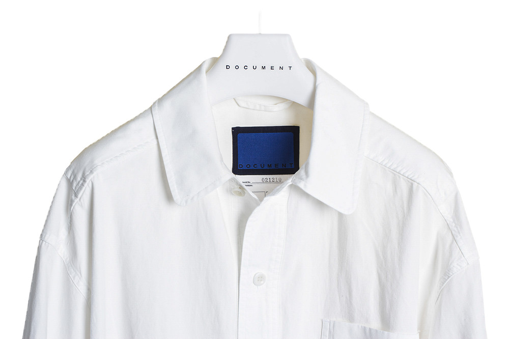 THE DOCUMENT SET UP SHIRT NAVY 와 동일한 실루엣으로 WHITE 컬러가 출시 되었습니다.