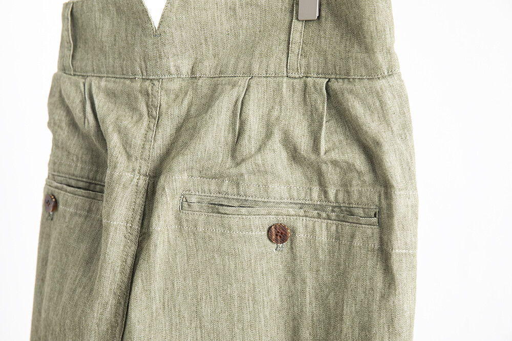 뒷주머니 안쪽에는 원단이 덧대어지고 벨트 뒤쪽에는 벤트가 있으며 벨트 앞쪽은 이중으로 감싸지도록 되어있는 높은 완성도로 만들어졌습니다.