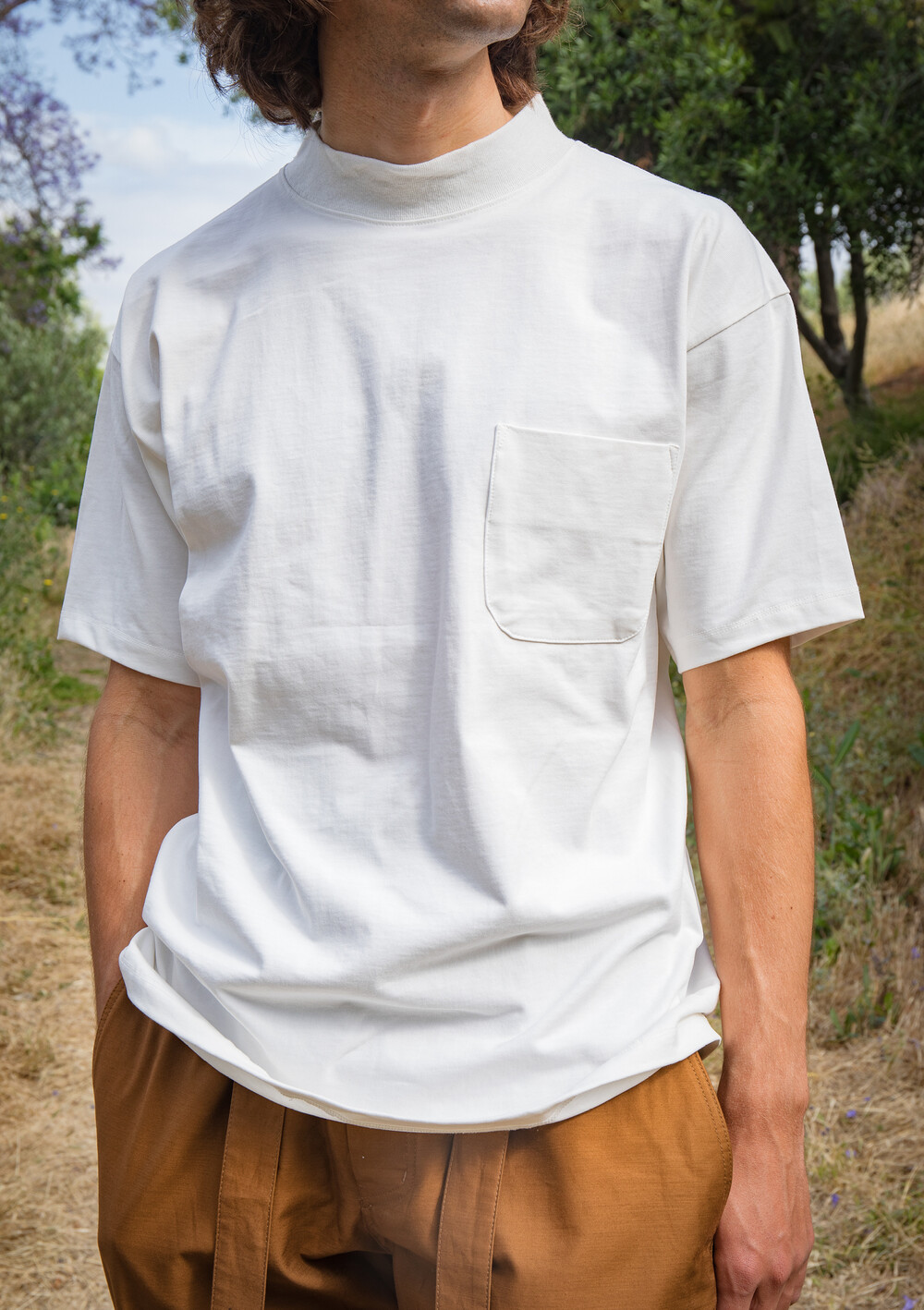 COTTON MOCK NECK POCKET T-SHIRT_NAVY