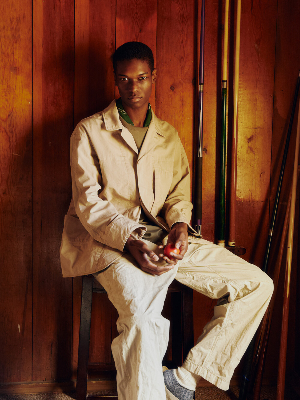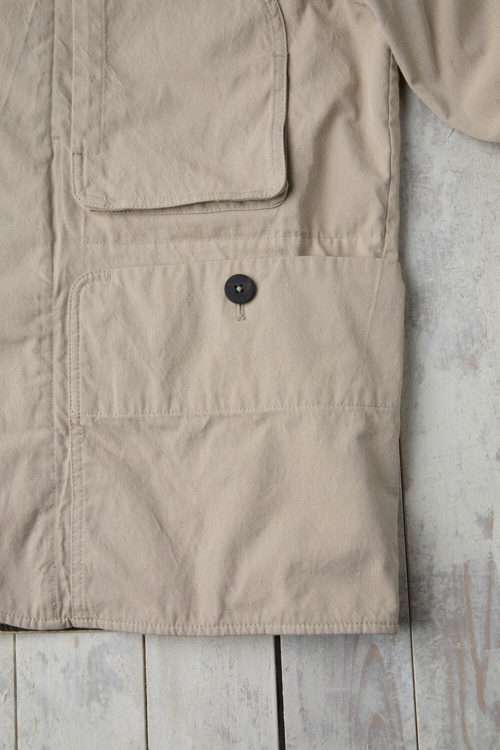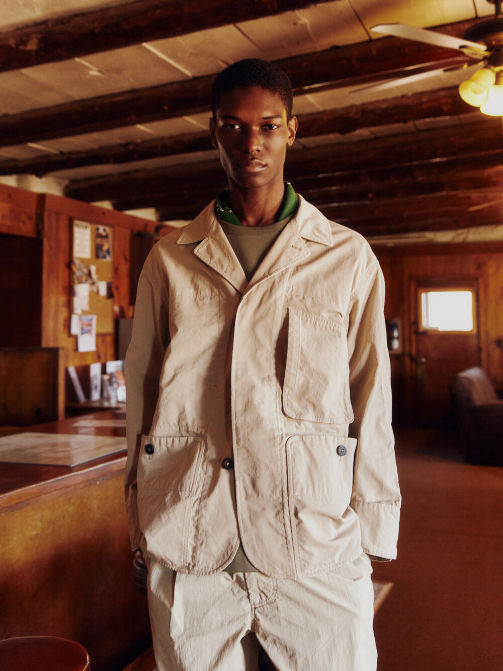 The front pockets reinterpret classic fishing-jacket details in a more refined arrangement, offering both storage and visual balance. A relaxed fit and center back tuck enhance mobility and comfort, while the interior construction mirrors the original structure—thoughtfully finished inside and out.
