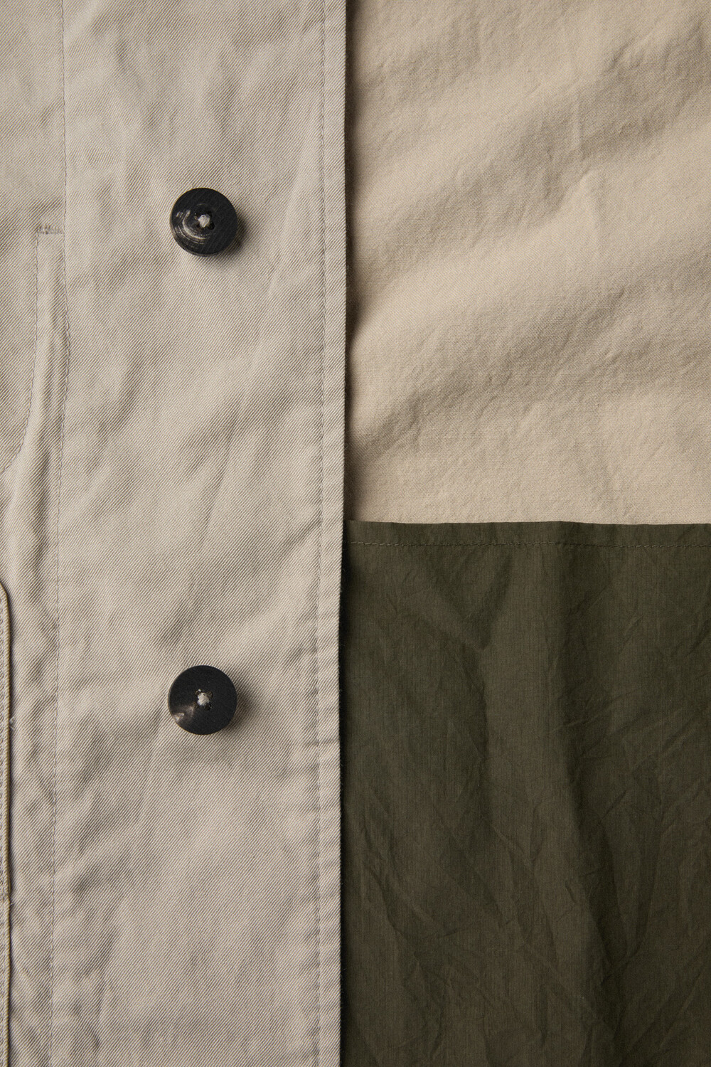 A modern reinterpretation of the fishing jacket, built with a refined sense of structure and everyday utility. Inspired by the original pocket layout and functional paneling, the design is cleaned up into a quieter, more balanced silhouette.