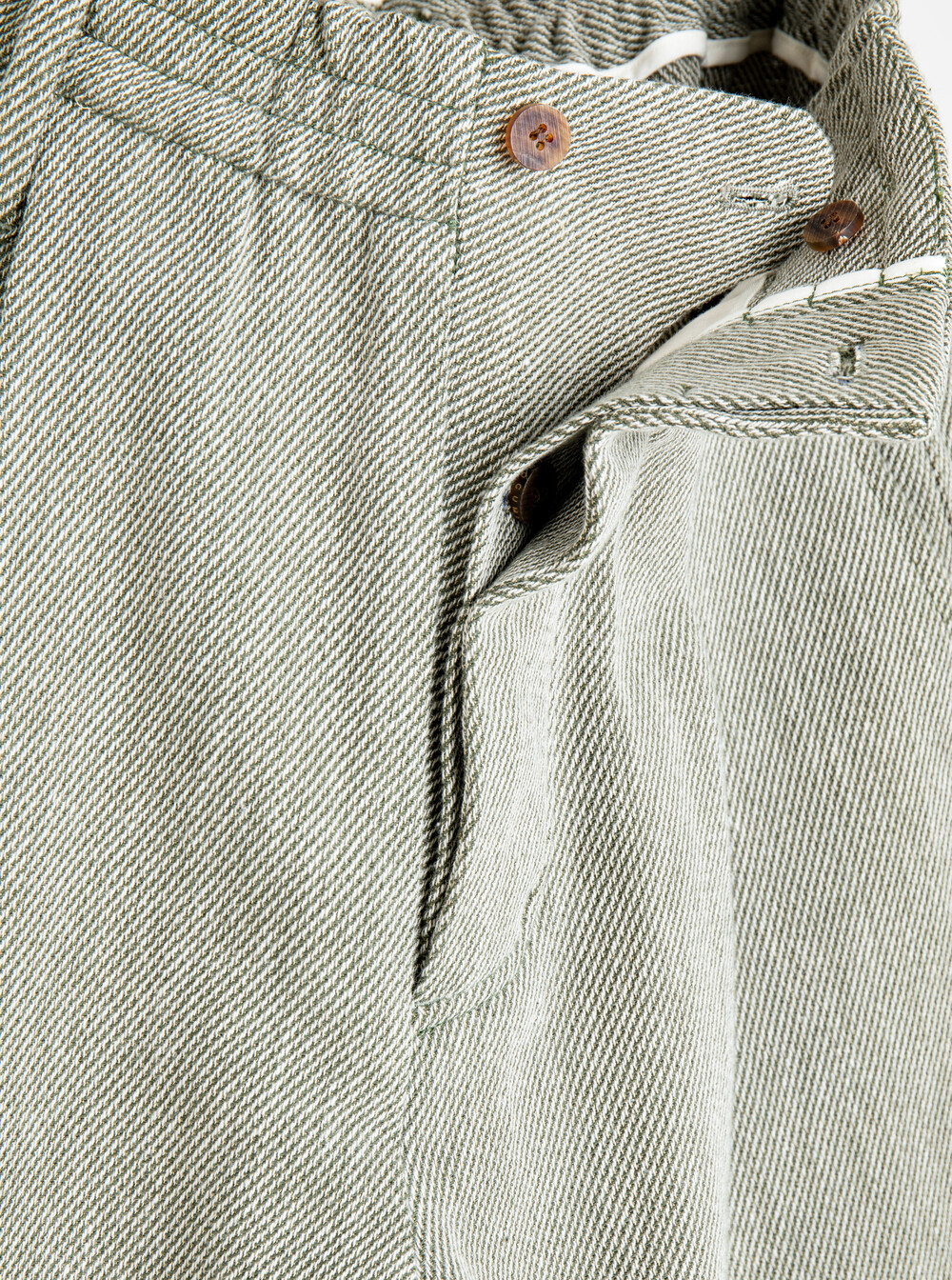 겉으로 드러나는 조직은 3가지 색의 혼합으로 이루어져 오묘한 MIXED TONE 으로 비춰지는 오카야마 산 트윌 코튼으로 제작되었습니다.