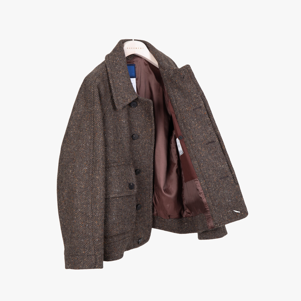 DONEGAL TWEED BIG POCKET HALF COAT_BROWN