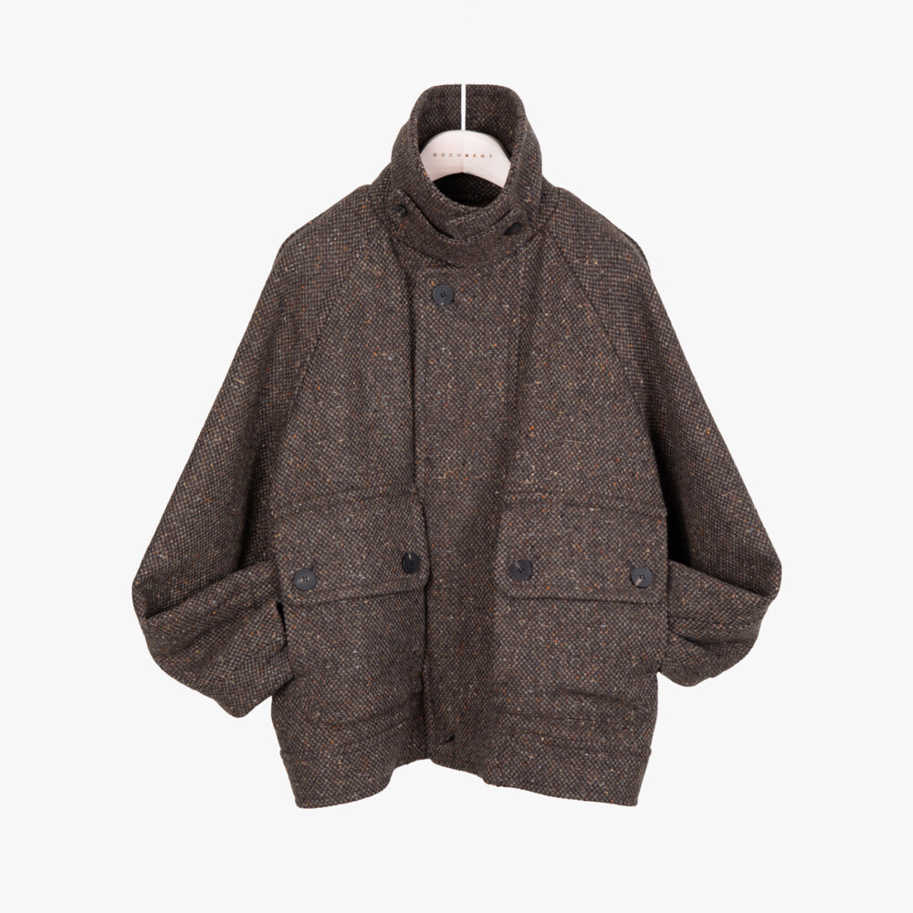 : DONEGAL TWEED BIG POCKET HALF COAT_BROWN