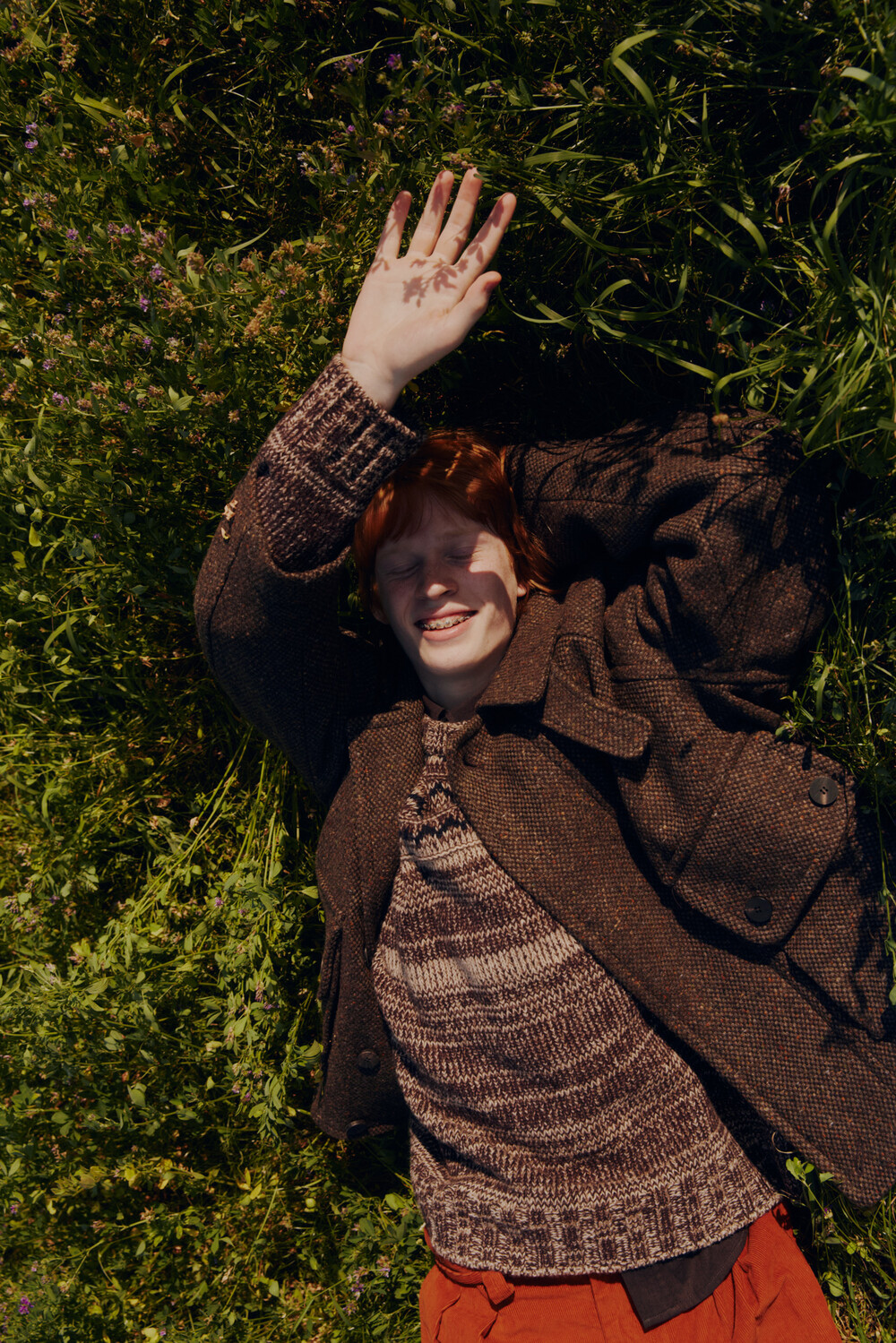 브라운 베이스 위에 베이지와 오렌지 네프사(nep yarns) 가 섬세하게 섞여,빛에 따라 따뜻하고 깊이 있는 컬러 레이어가 드러납니다.이 중량감 덕분에 실루엣은 흐트러지지 않으며, 어깨에서 밑단으로 이어지는 곡선이 자연스럽게 형태를 세웁니다.무게를 통해 형태를 지탱하는 구조 — 도큐먼트 특유의 정적 구조미가 가장 잘 드러나는 아이템입니다.