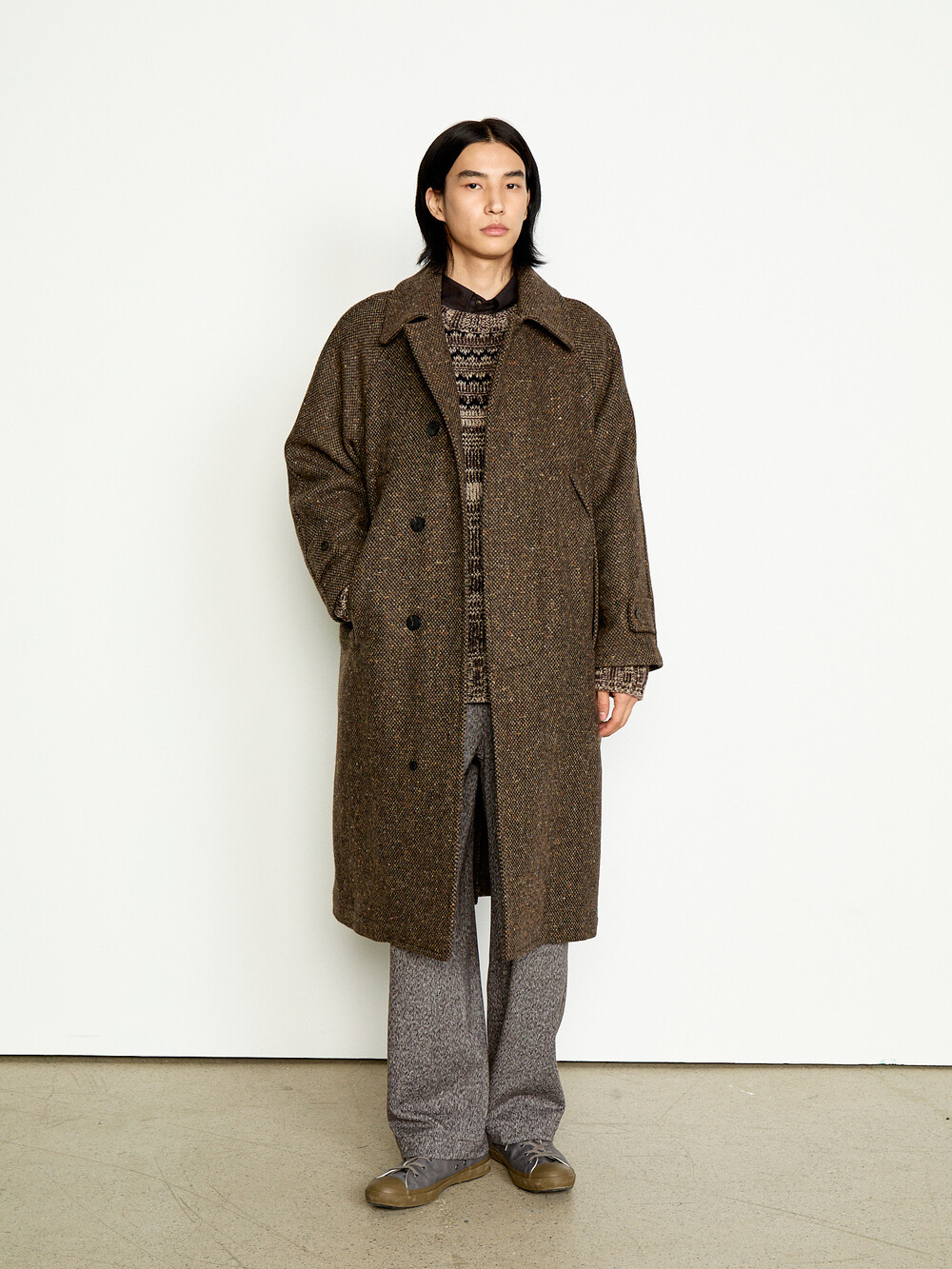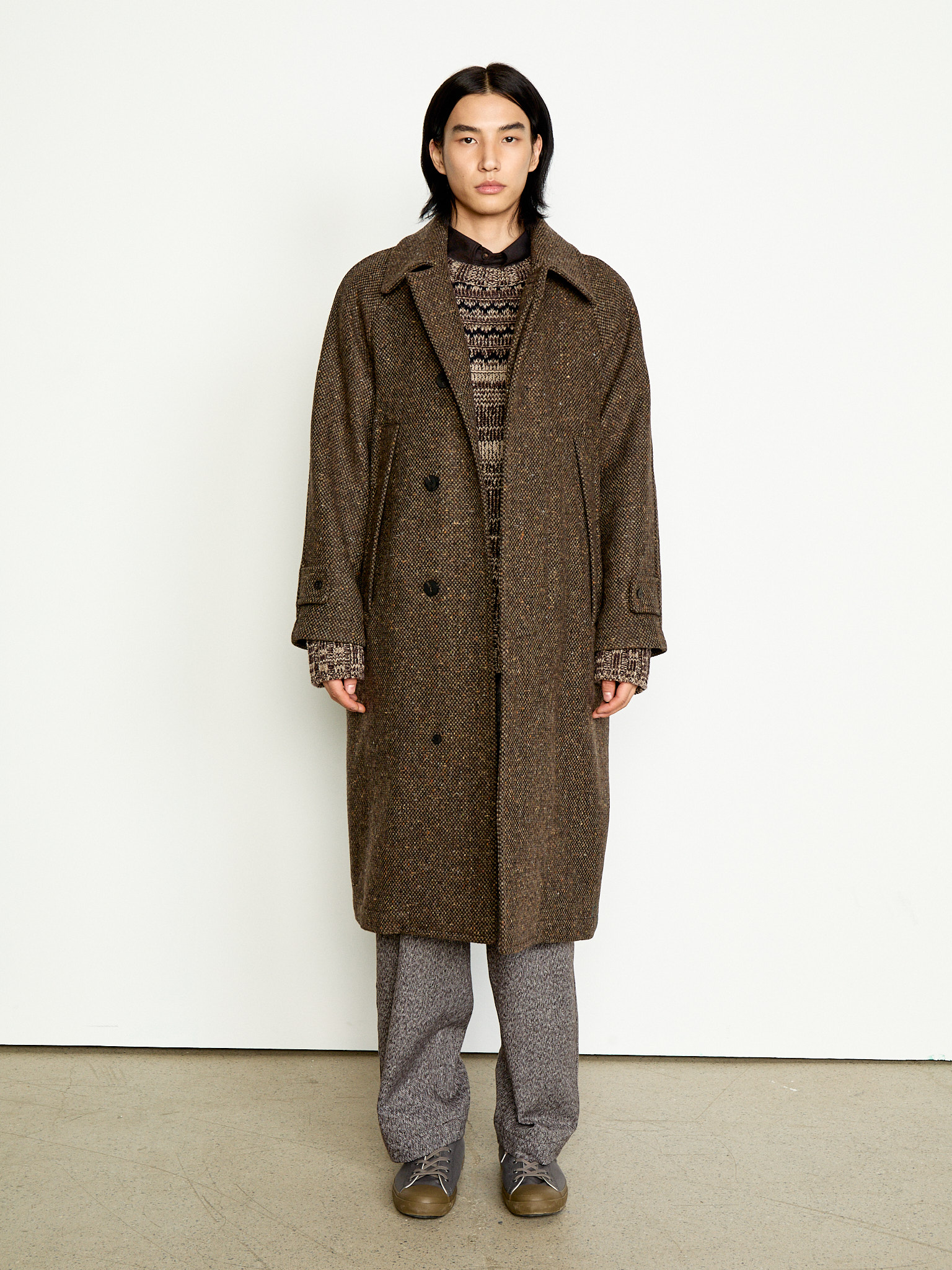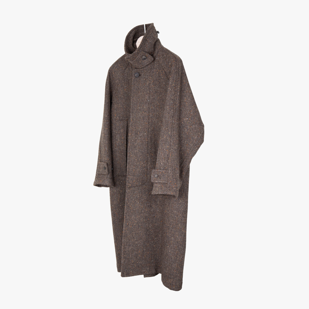 DONEGAL TWEED INVERTED PLEATS BALMACAAN COAT_BROWN