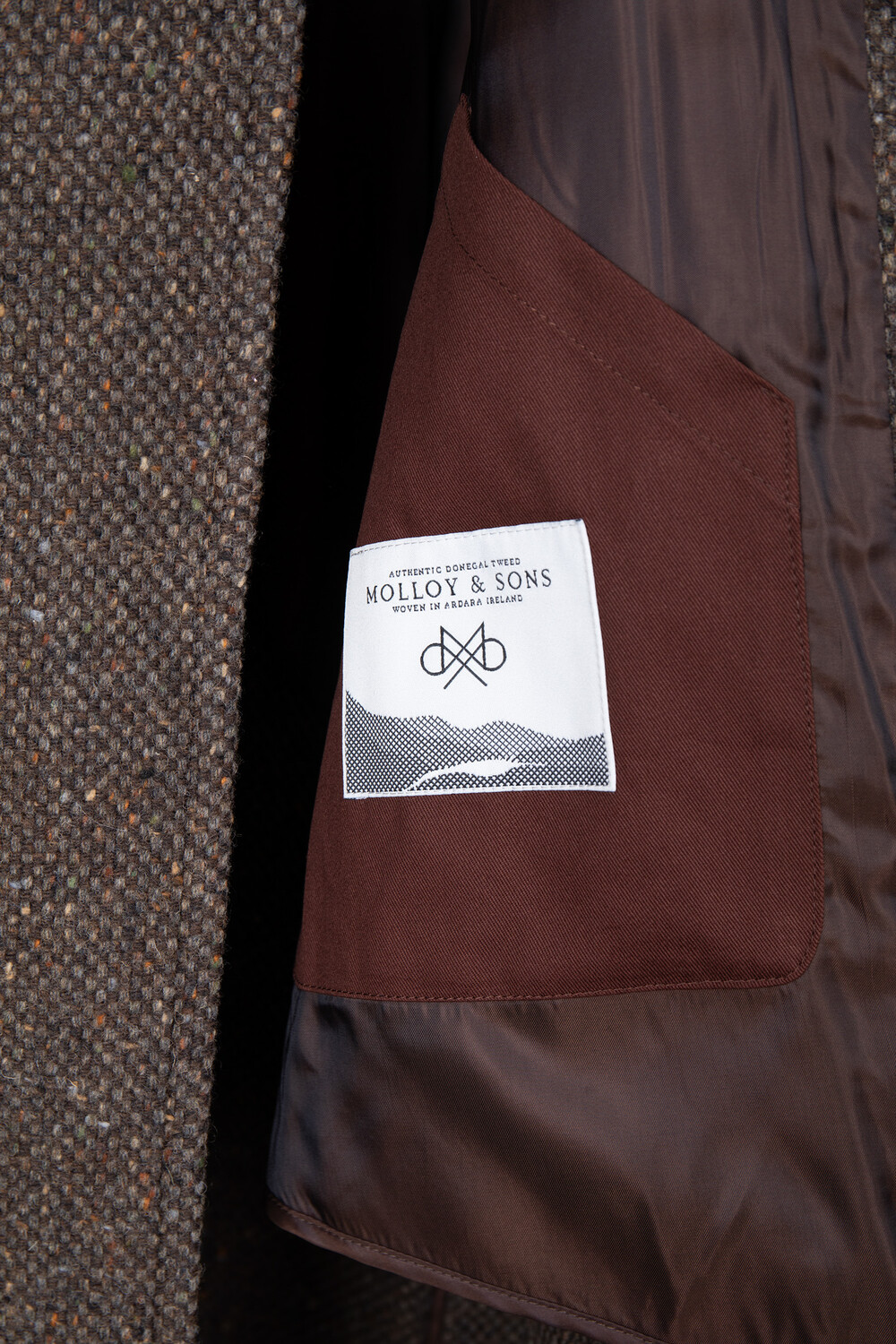Crafted from authentic Donegal Tweed,a fabric that takes its name and character from the Donegal region in Northern Ireland,the coat is woven in collaboration with MOLLY & SONS,a mill with a long-standing heritage in the region,using an original fabric exclusively developed for DOCUMENT.