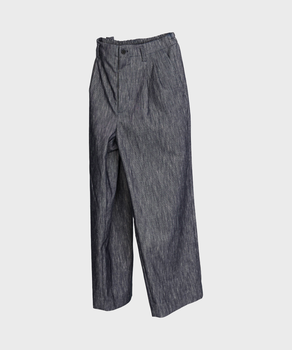 : DOUBLE FACE SLUB DENIM TUCKED TROUSERS