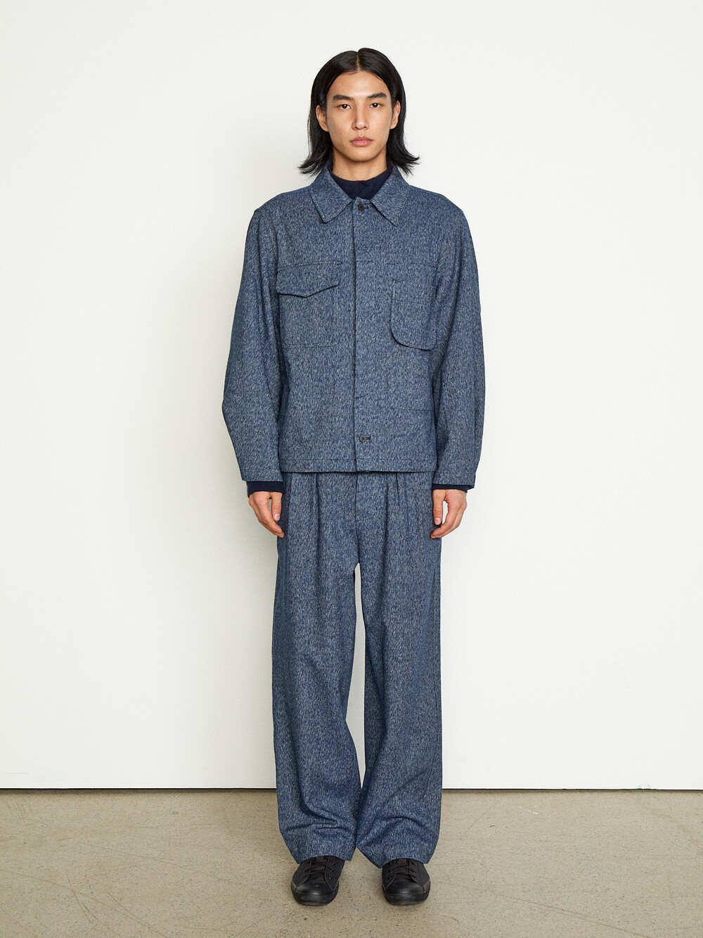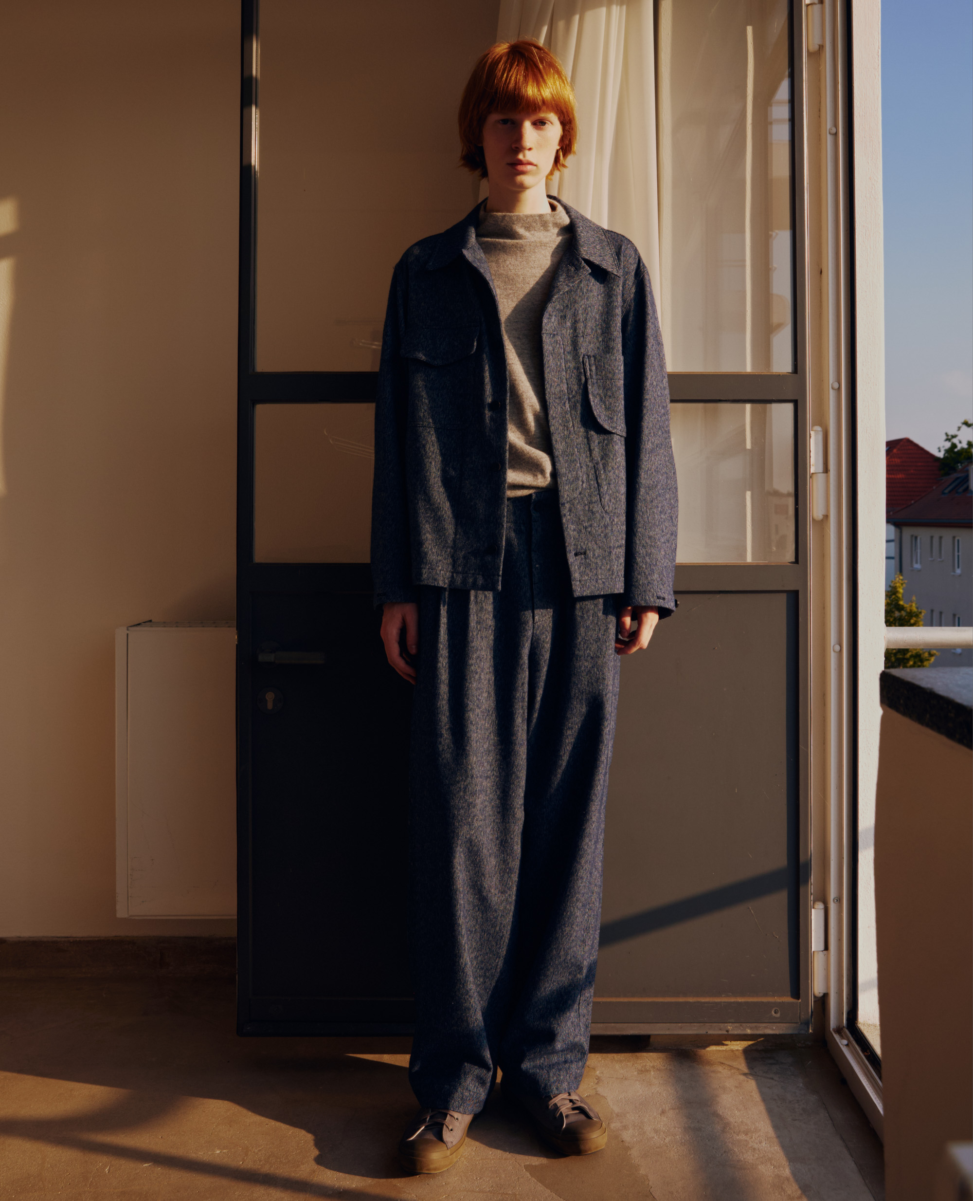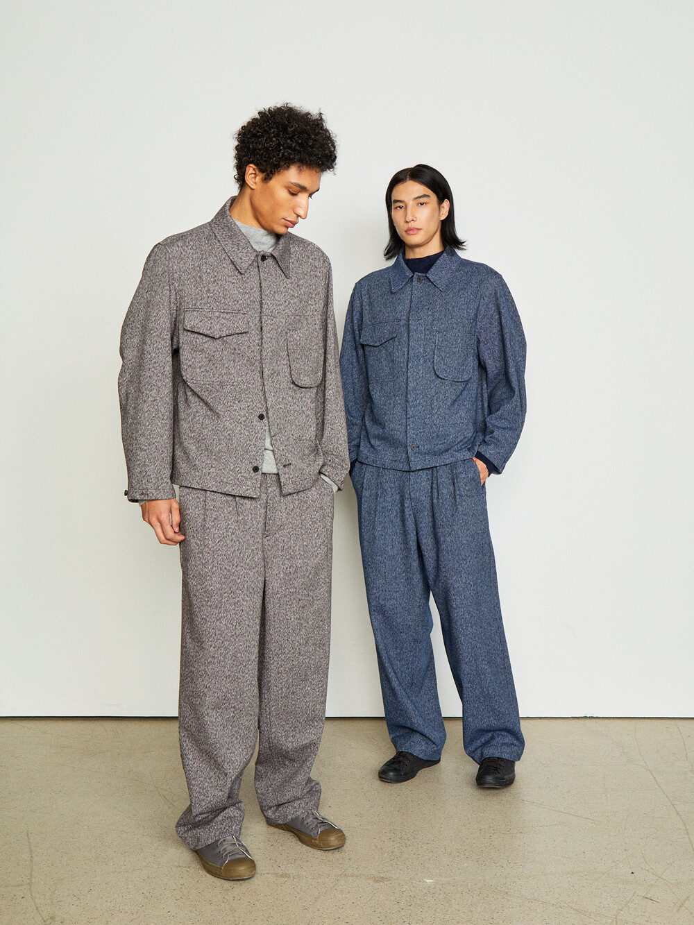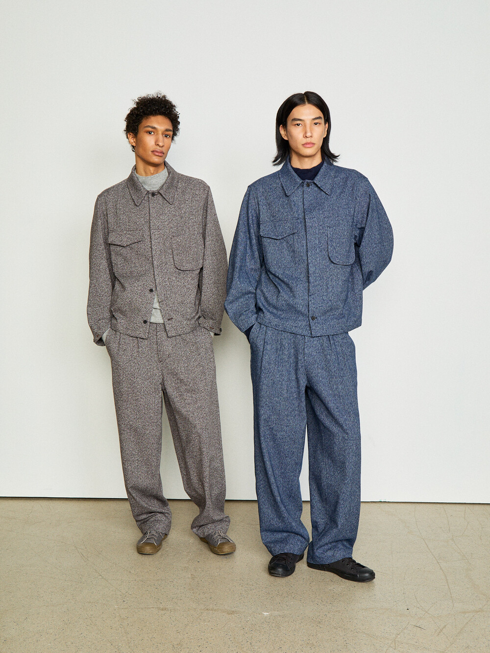 A wide silhouette trouser from DOCUMENT,crafted from Wool Cotton Denim woven in Okayama, Japan.