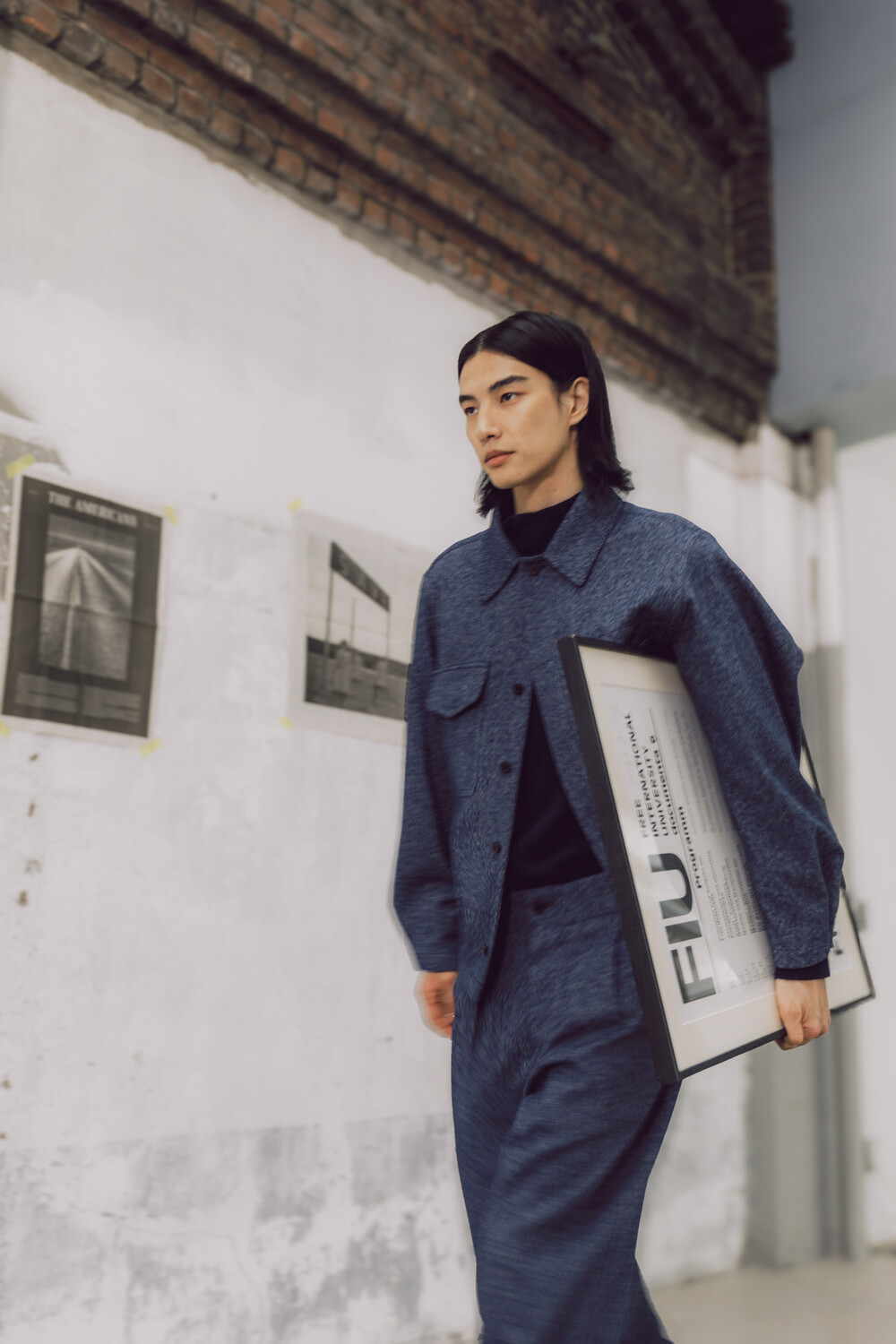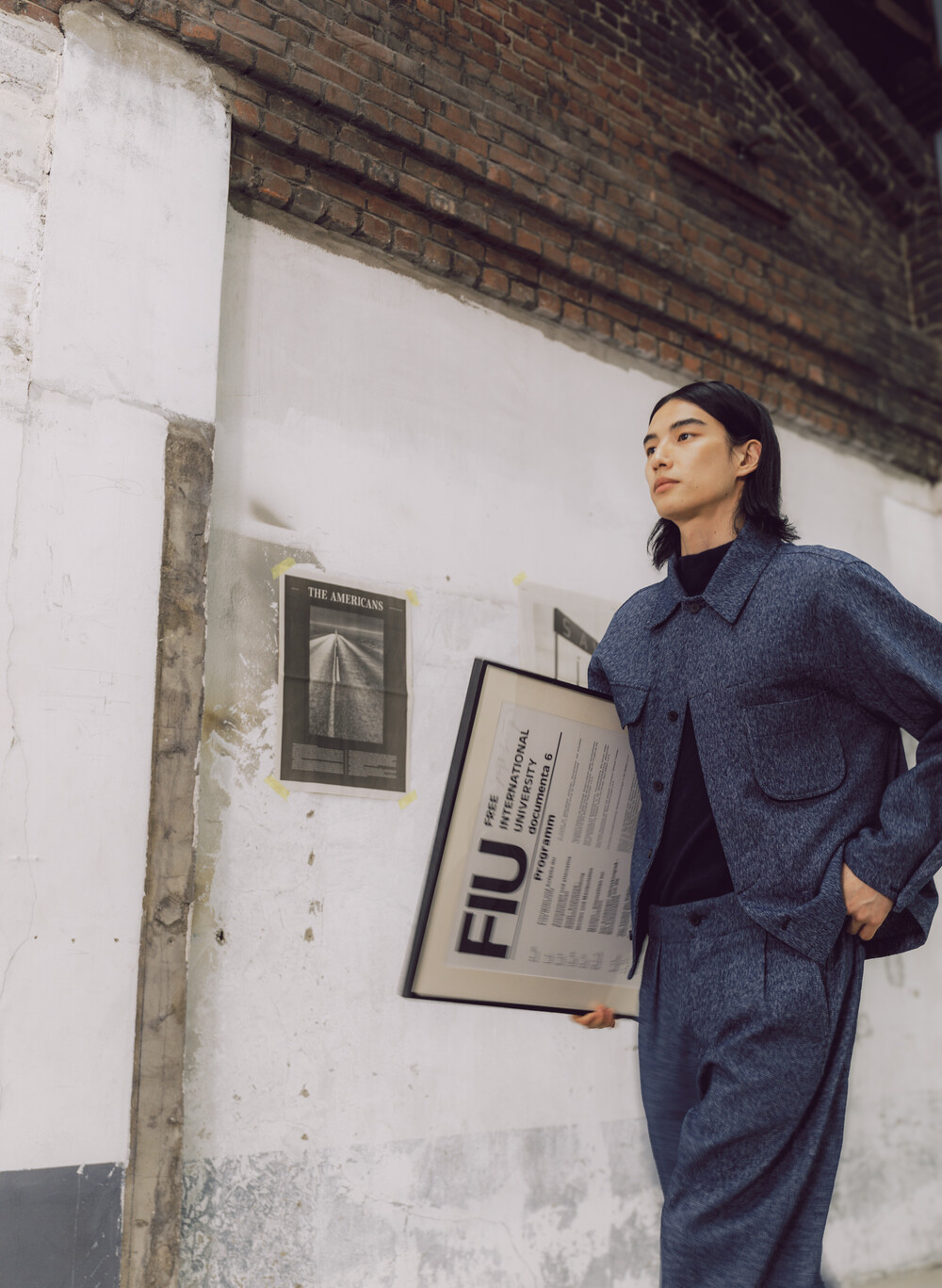 이 원단은 전통적인 셔틀 직기(shuttle loom) 로 짜여,표면에 섬세한 결감과 깊은 색감을 지니며,코튼의 내구성과 울의 부드러움이 공존합니다.적당한 두께감과 자연스러운 드레이프가 어우러져,겨울철에도 편안하면서도 안정된 실루엣을 만들어줍니다.