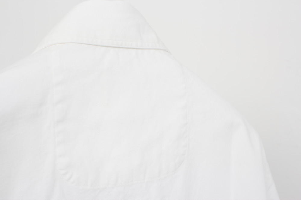 오프 화이트 컬러의 일본산 옥스포드 원단으로 제작된 둥근 카라와 옆선의 주머니가 특징인 셔츠입니다.