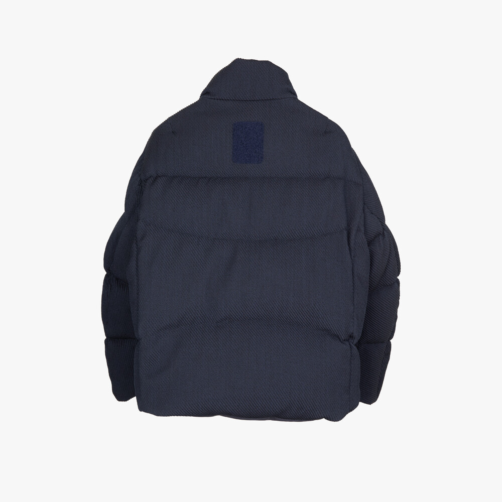 이탈리아산 울 블렌드 트윌 원단과 일본산 발수 폴리에스터 원단으로 제작된 리버서블 구스다운 재킷입니다.겉면은 부드럽고 밀도 있는 울 원단으로, 비대칭적인 다운 퀼팅 디자인을 적용해입체적이면서도 절제된 구조미를 표현했습니다.
