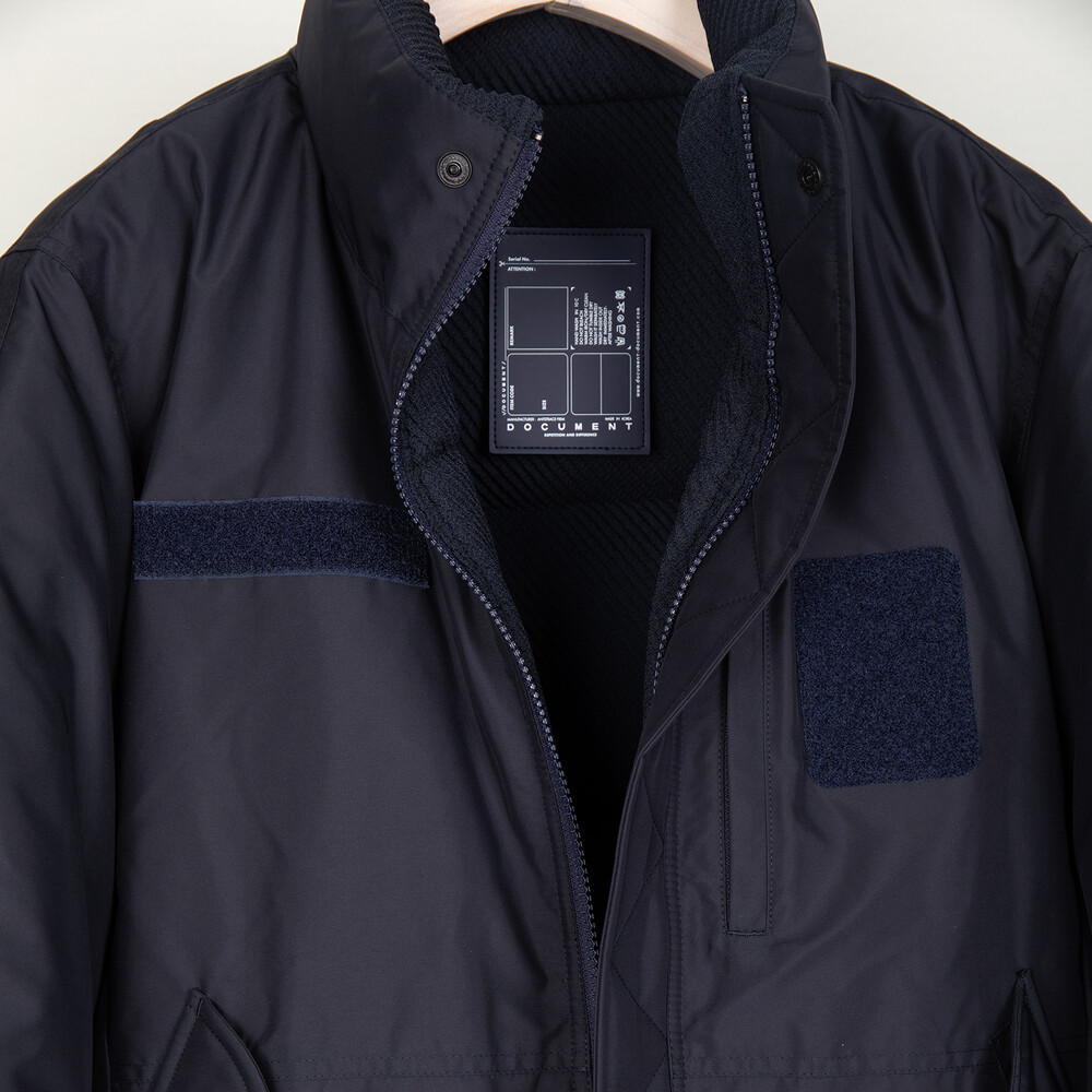 The DOCUMENT signature label is designed as a detachable Velcro patch,allowing it to be repositioned freely for a personalized look.Adjustable drawcords at the hem and cuffs enable subtle control of shape and fit.