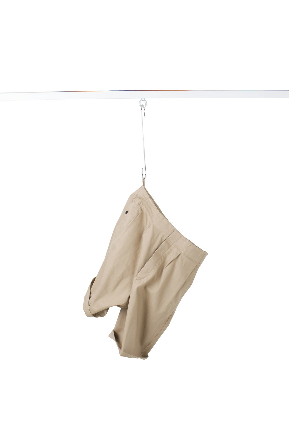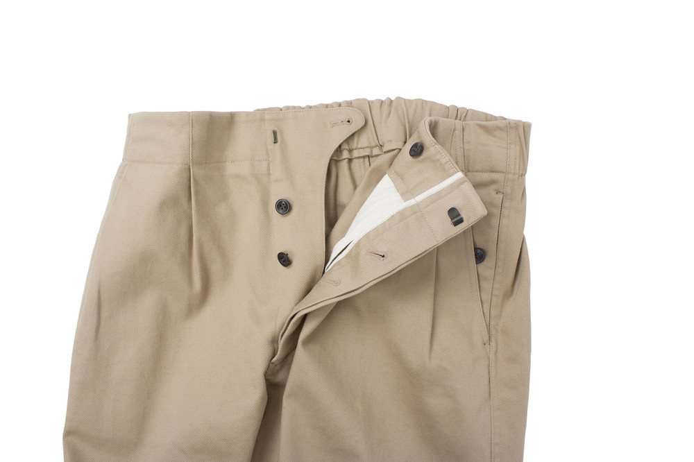 뒤 허리에는 밴딩이 되어 있어서 사이즈의 폭을 넓혀주며, 앞에는 턱이 되어 있어서 와이드한 실루엣을 보여줍니다.
