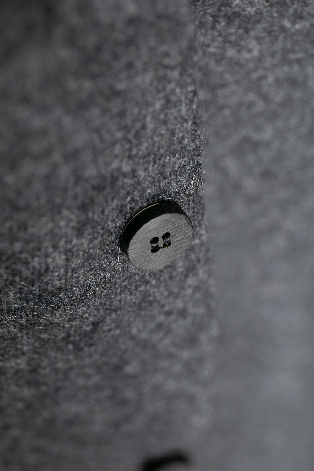 20번째 반복과 차이에서 새롭게 선보이는 디자인으로 여유있는 실루엣과 함께 천연 소뿔 단추로 마감하였습니다.