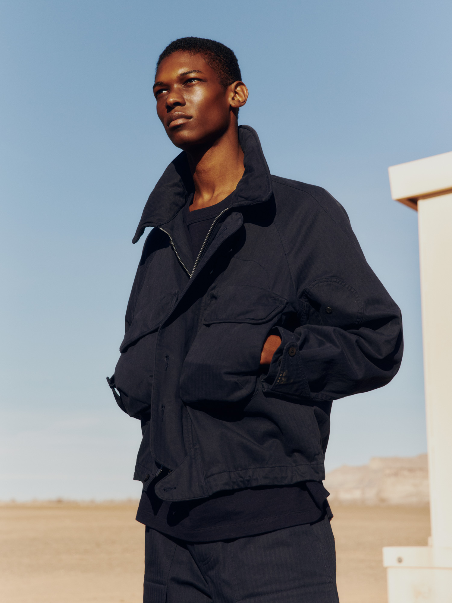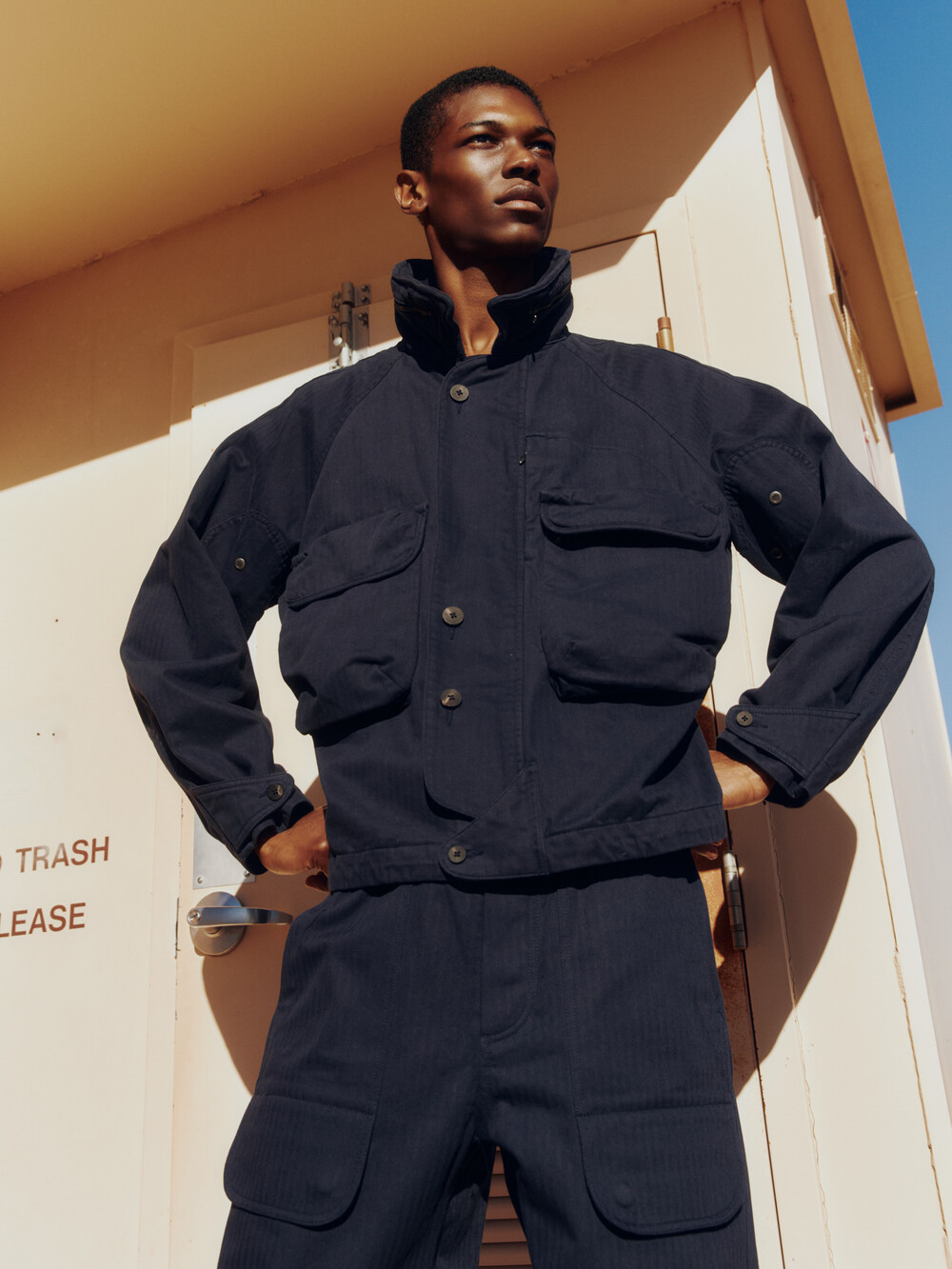 The jacket is made from Brisbane Moss’ UK herringbone cotton, finished with a garment-wash process to bring out a vintage tone and a rich, dimensional texture. As it’s worn, the fabric naturally evolves in tone and hand feel, developing an even more distinctive character over time.