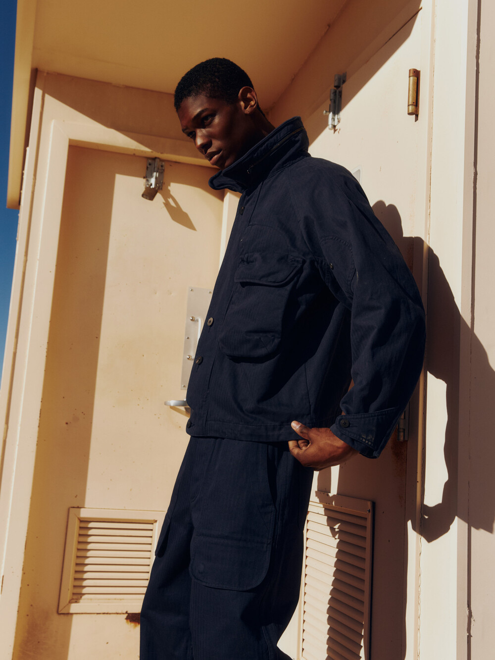 (FFC x DOCUMENT) Heritage herringbone cotton Fishing Jacket_navy