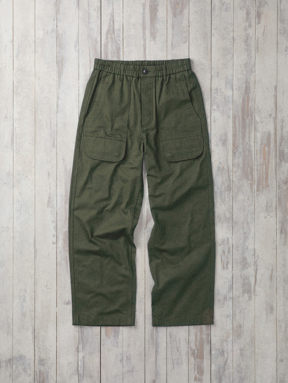 The silhouette is easy, while the details stay solid. A comfort elastic waistband makes it effortless for daily wear and comfortable on active days. Large patch pockets are placed on the front and back for function and balance, while the rear is finished with flap pockets for a cleaner, more refined look. Cut in a relaxed straight fit, it pairs well with both shorter and longer tops—working naturally with shirts, knits, and field jackets.