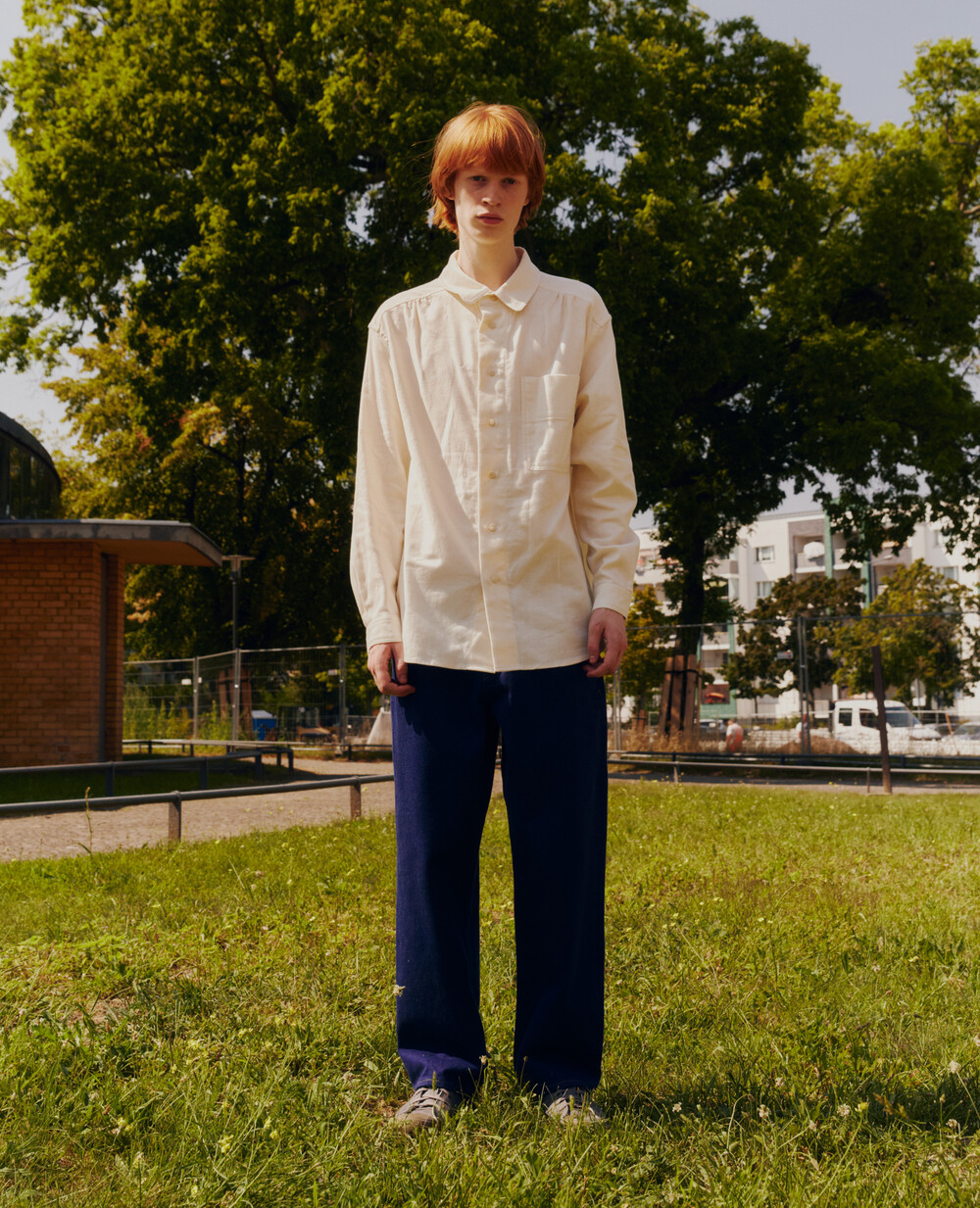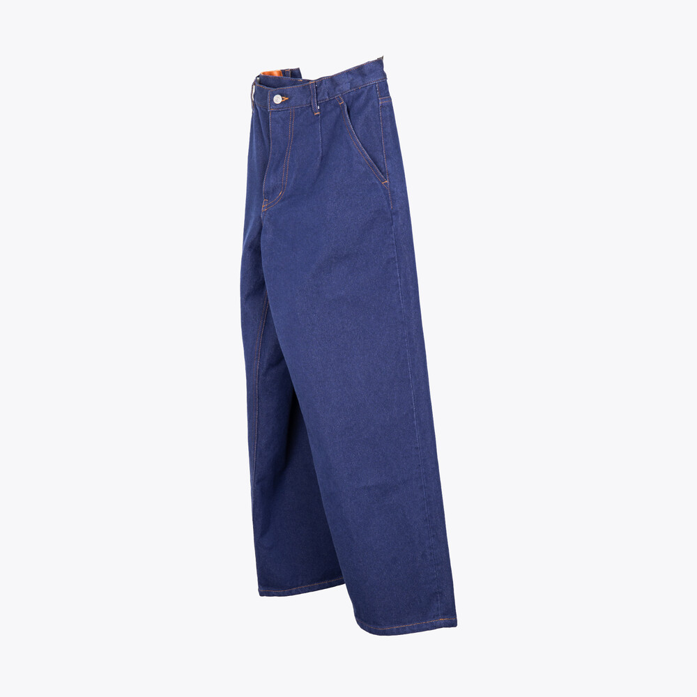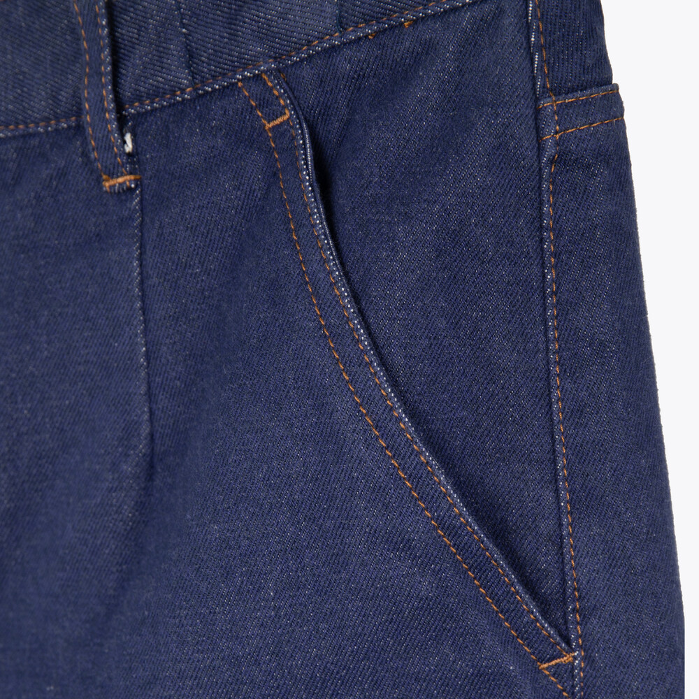 Crafted from organic English denim cotton, these trousers offer both structure and softness, with a refined depth of color. The fabric has been washed to achieve a balance between firmness and comfort, ensuring durability while maintaining a supple touch.