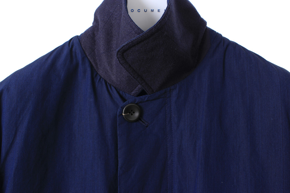 기존에 선보였던 도큐먼트 맥 코트에 인디고 코튼원단을 사용하여 패딩으로 만들었습니다.