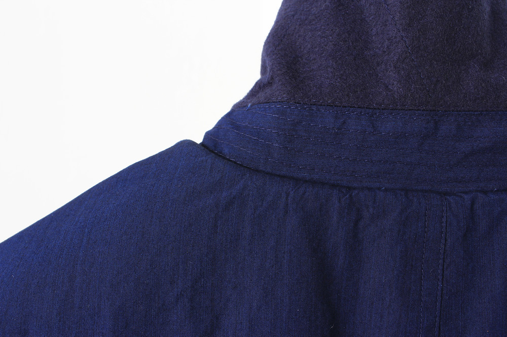 몸판과 소매, 각각 5온스 , 3온스 솜을 넣어서 보온성을 높였으며, 자연스런 인디고 색감과 폭신한 패딩 코트의 실루엣이 특징입니다.