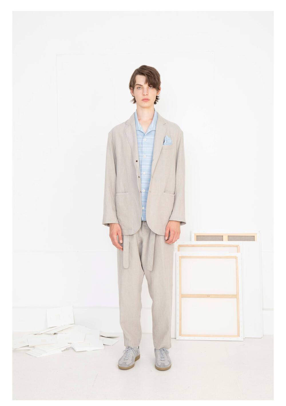 롤링 라펠의 유려한 선을 그려나가는 실루엣으로 버튼은 세개이지만, 가운데 두번째 단추부터 채울 수 있게 설계된 롤링 라펠입니다. 린넨의 질감과 부드러운 착용감이 함께합니다.