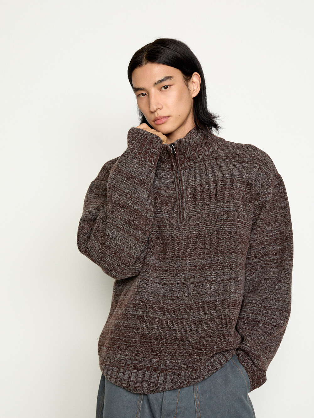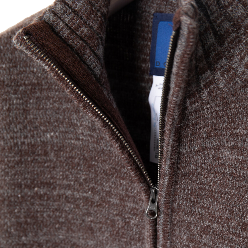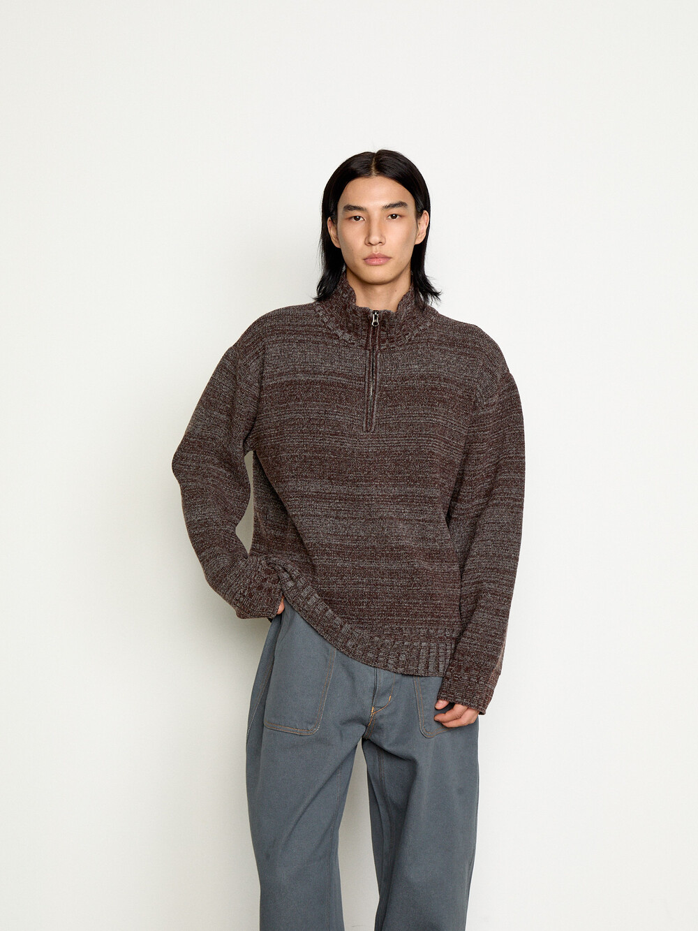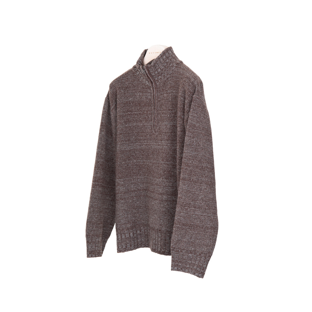 LAMBSWOOL TWEED HALF ZIP-UP SWEATER_BROWN
