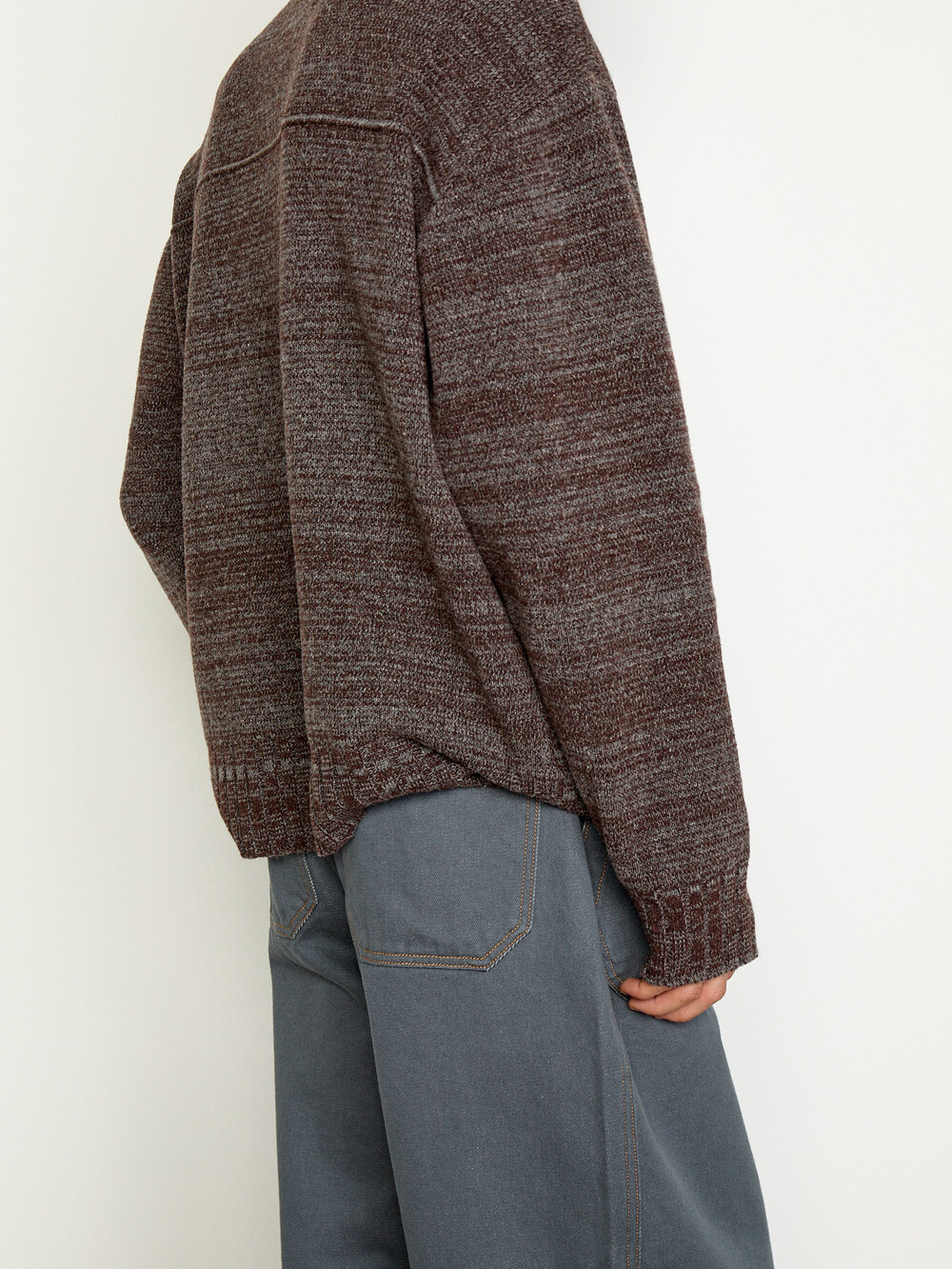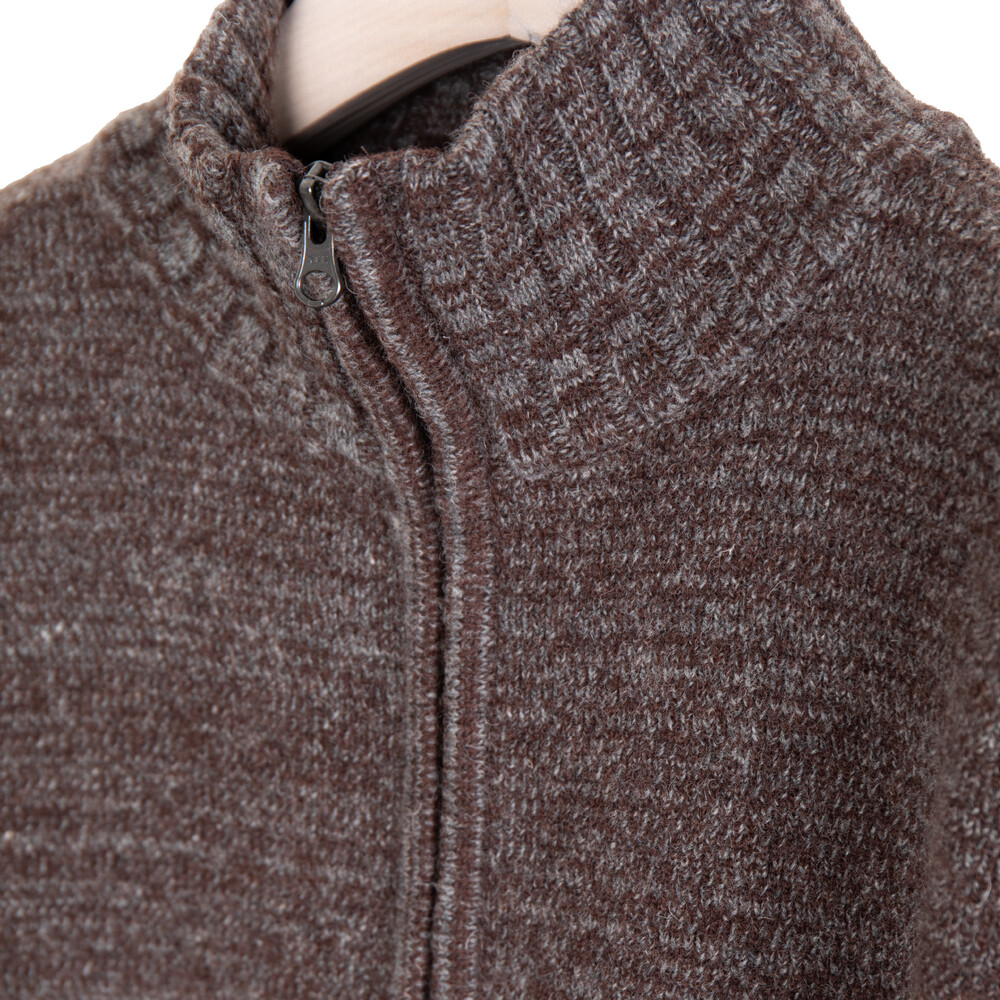 두 가지 컬러의 램스울 원사를 편직 과정에서 꼬아내는 기법을 사용하여 깊이 있는 트위드 질감과 자연스러운 컬러를 구현하며 개체마다 조금씩 달라져서 고유성을 지니는 것이 특징입니다 원사 단계에서 멜란지를 만든 것이 아니라, 편직 중 색실을 교차하여 꼬아내어 보다 입체적인 색감이 살아납니다.YKK 원웨이 지퍼, 리브 처리된 밑단과 소매단으로 마무리했으며, 편안한 착용감과 살짝 여유 있는 실루엣으로 다양한 스타일에 자연스럽게 어울립니다.