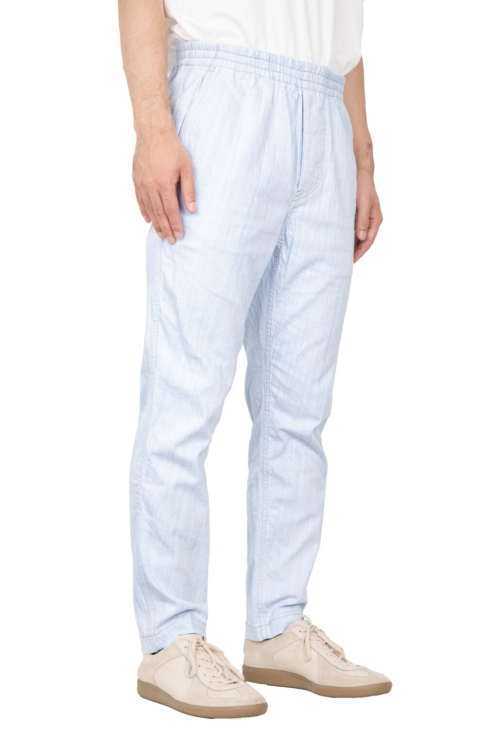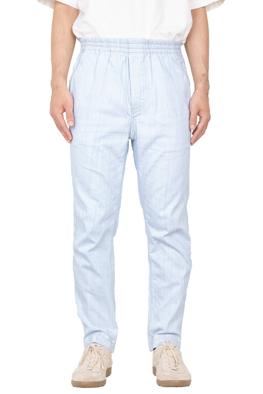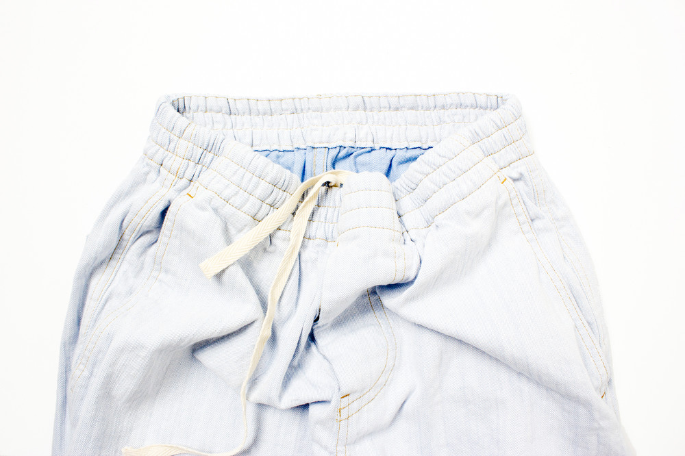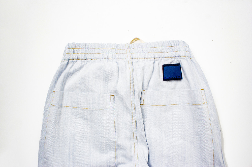 허리 밴드를 이루어져 아래 위로 2 사이즈를 넘나 듭니다. 바지통에 맞게 허리를 착용하실수 있습니다. 파자마 팬츠의 바지통보다는 조금 슬림하게 재단되었습니다. 벤딩으로 이루어진 빈티지 클래식 데님 팬츠를 도큐먼트의 해석으로 구현하였습니다.