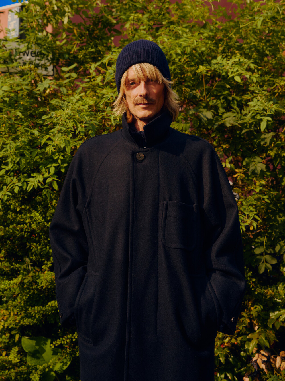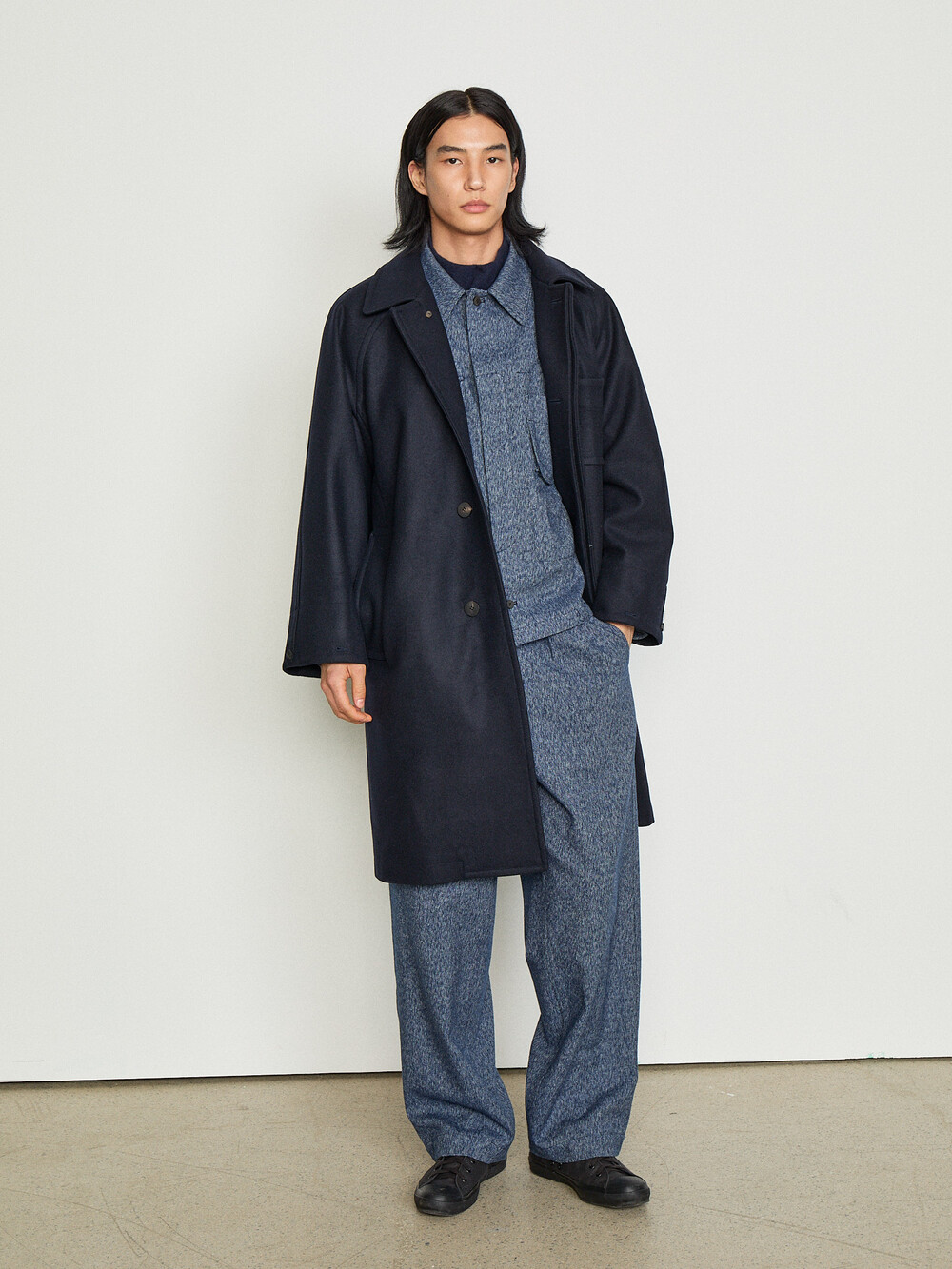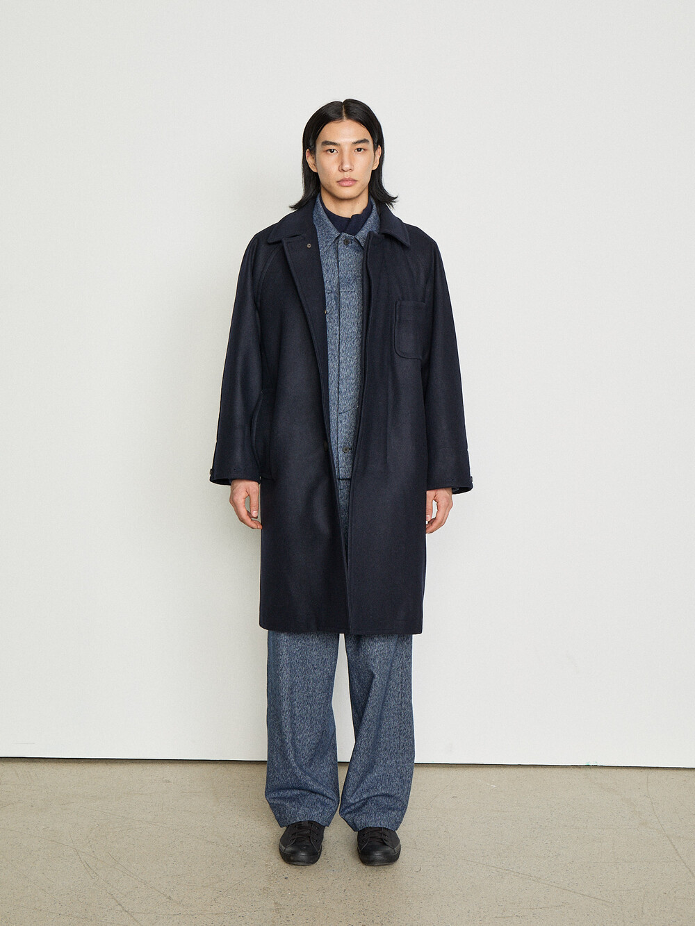 A coat that balances a relaxed silhouette with the quiet depth of navy,crafted from a dense 22oz fabric that delivers structure and warmthwhile remaining lighter and softer than traditional heavy melton.