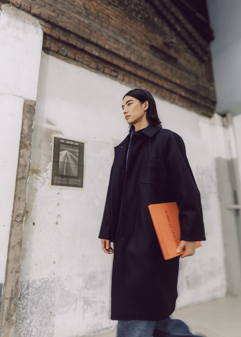 Versatile and understated, this navy daily coat complements a wide range of outfits,embodying the calm precision that defines DOCUMENT.
